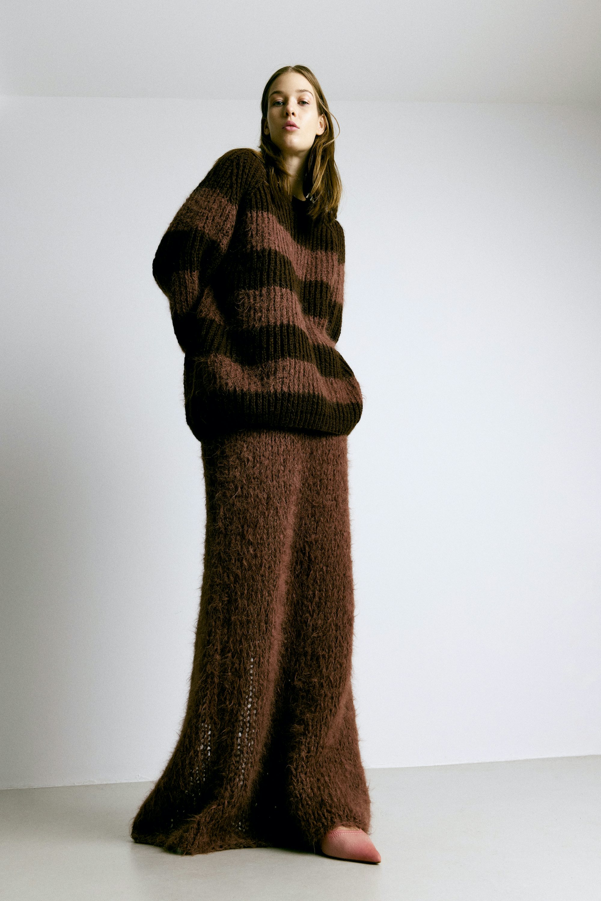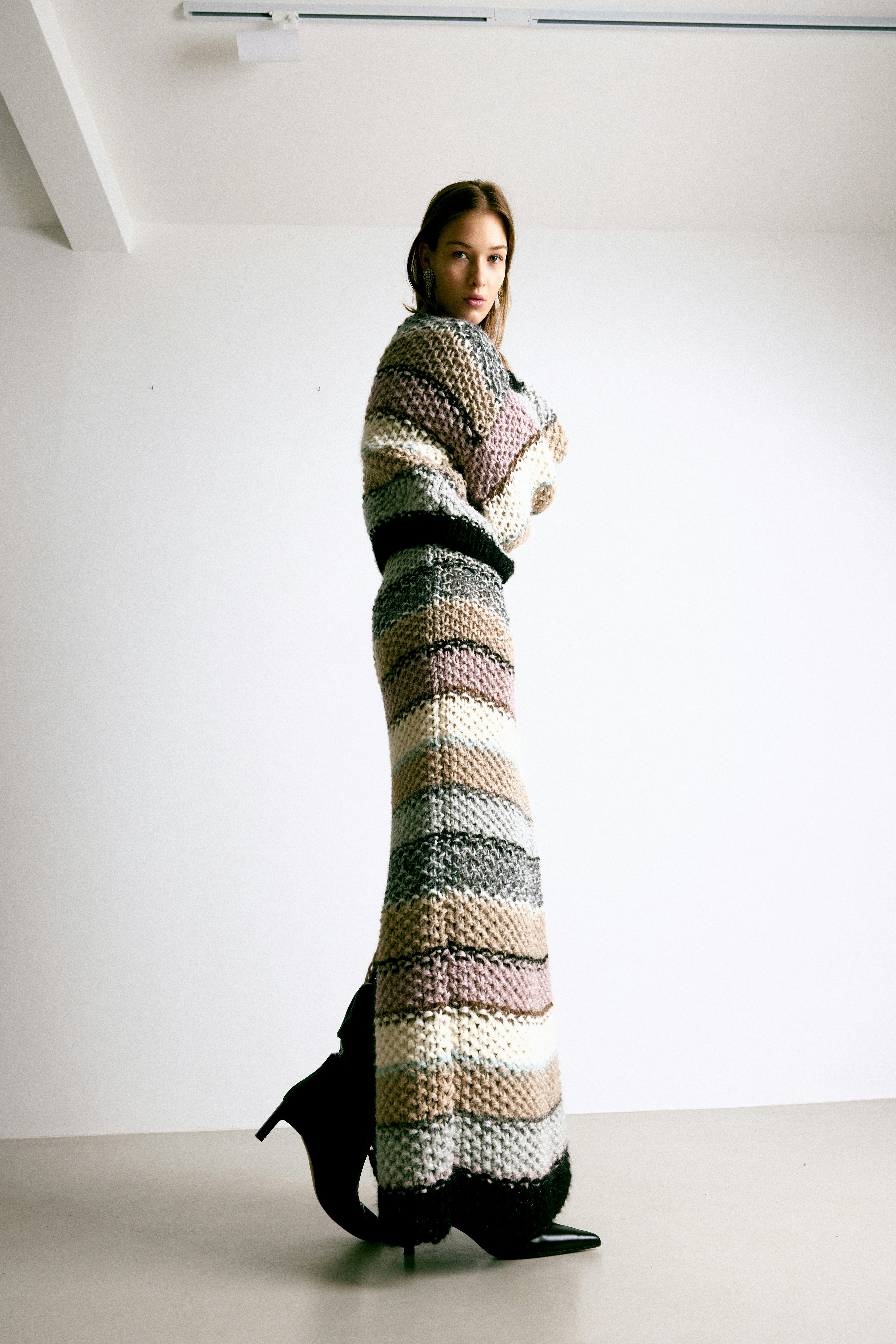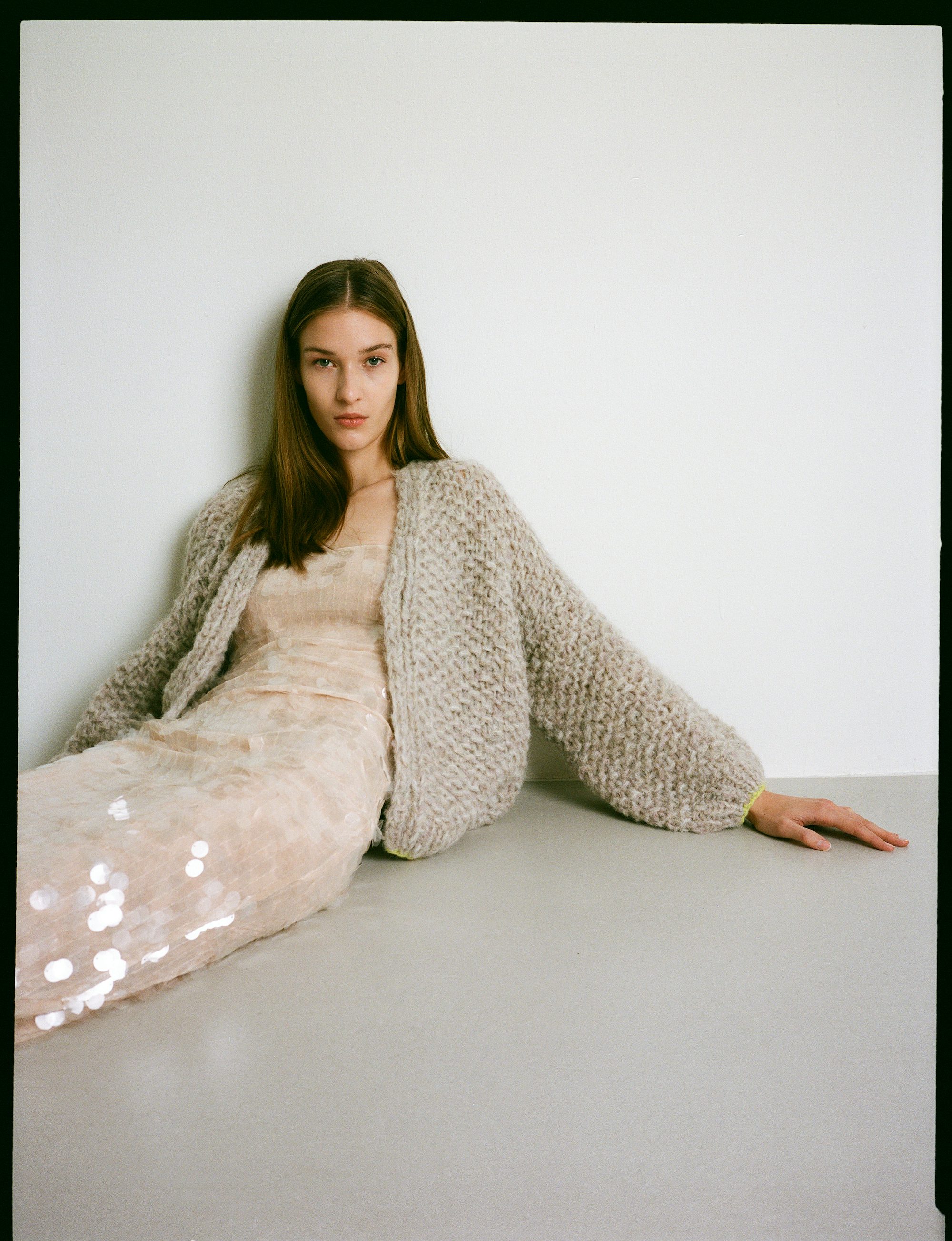 Nee, genervt bin ich nicht. Ich bin körperlich leider in Mitleidenschaft vom Stricken geraten, meine Schulter macht nicht mehr ganz so mit. Da merke ich, dass ich es vielleicht ein wenig übertrieben habe an den Nadeln. Das ist so schade, weil das meine Art als Autodidaktin war, mich auszudrücken. Für mich war der Prozess des Strickens immer wichtig. Jetzt arbeite ich mehr mit meinem Design-Team.