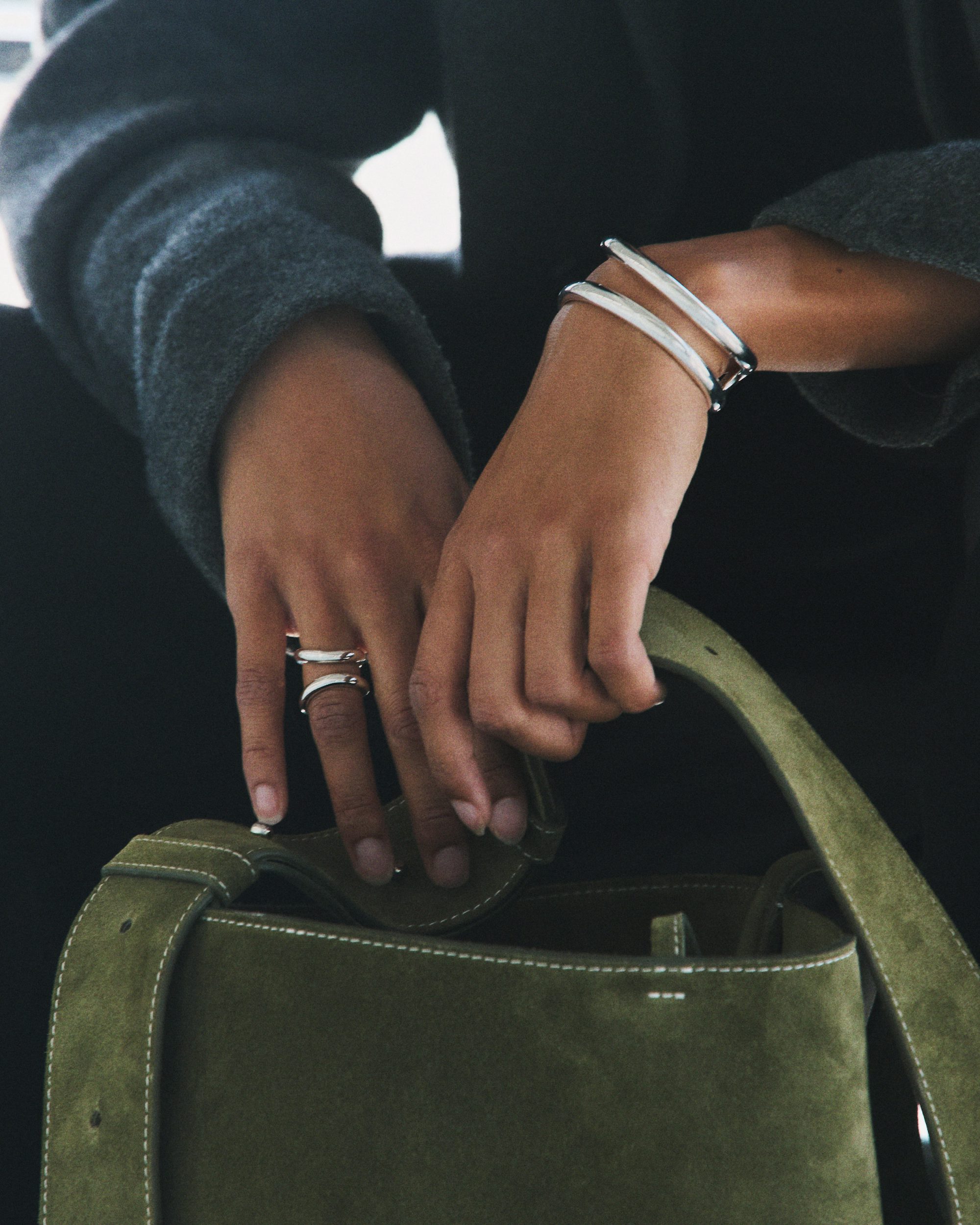 Ich hab beim Anblick einen kleinen Freudensprung gemacht, denn die Tote Bag kommt jetzt in Wildleder und vor allem in dem schönsten Grün, mit passenden Gürteln. Die Kampagnenfotos zeigen schon: Für den Look mit der Bag braucht man gar nicht viel, ein Paar gutsitzende Jeans plus ein Longsleeve und natürlich Schmuck von Lié Studio reichen schon aus.