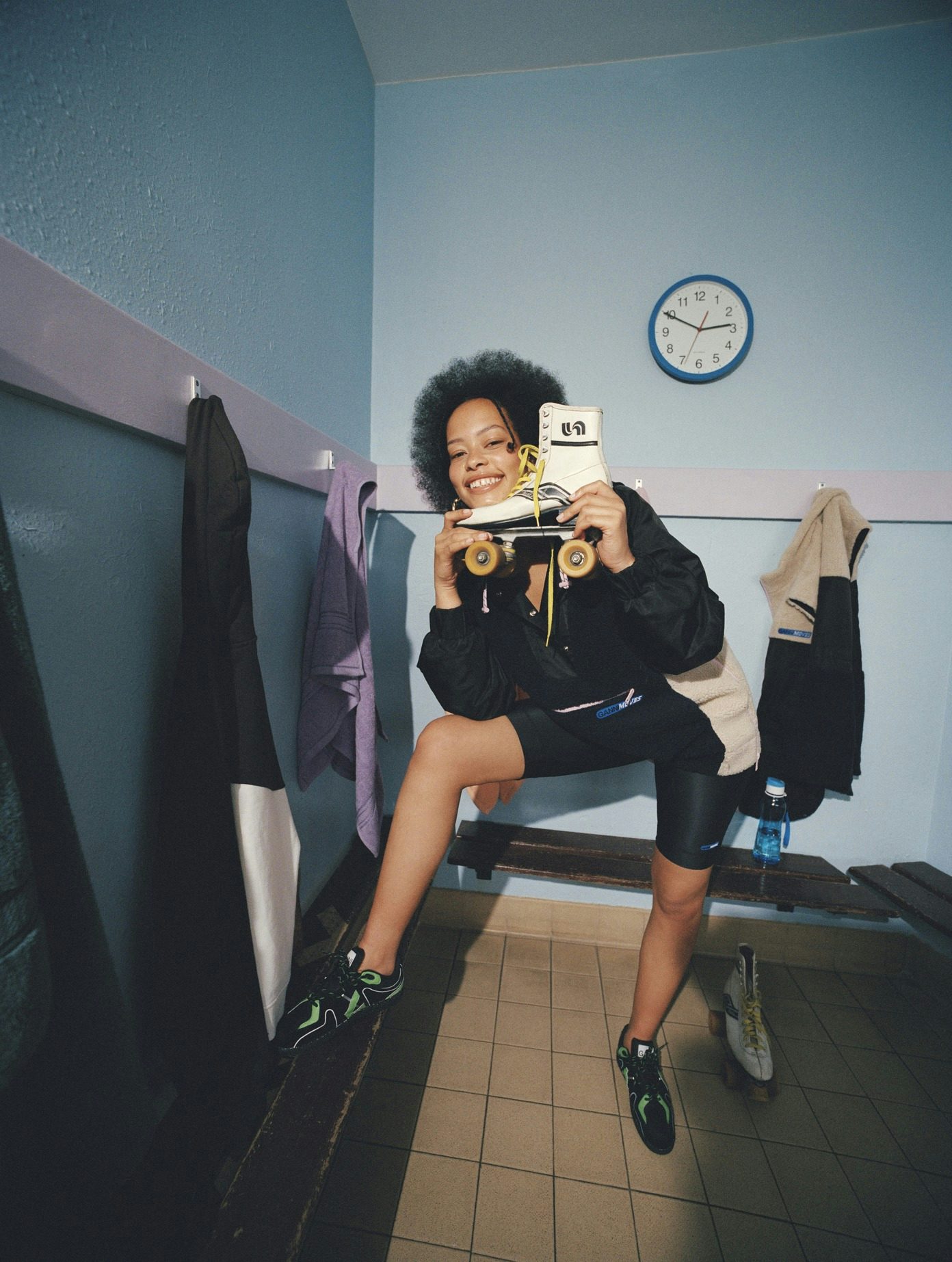 Ganni Klub baut auf den bestehenden Kollektionen auf und macht Sporswear so fashionable, dass damit das Fitnessstudio zum Runway wird. Geshootet wurde die neue Kollektion übrigens am Londoner Rollerskate-Kollektiv „Skate With Sis“. Holt die Rollschuhe raus und ab in den Ganni-Body. So macht Trainieren Spaß!
