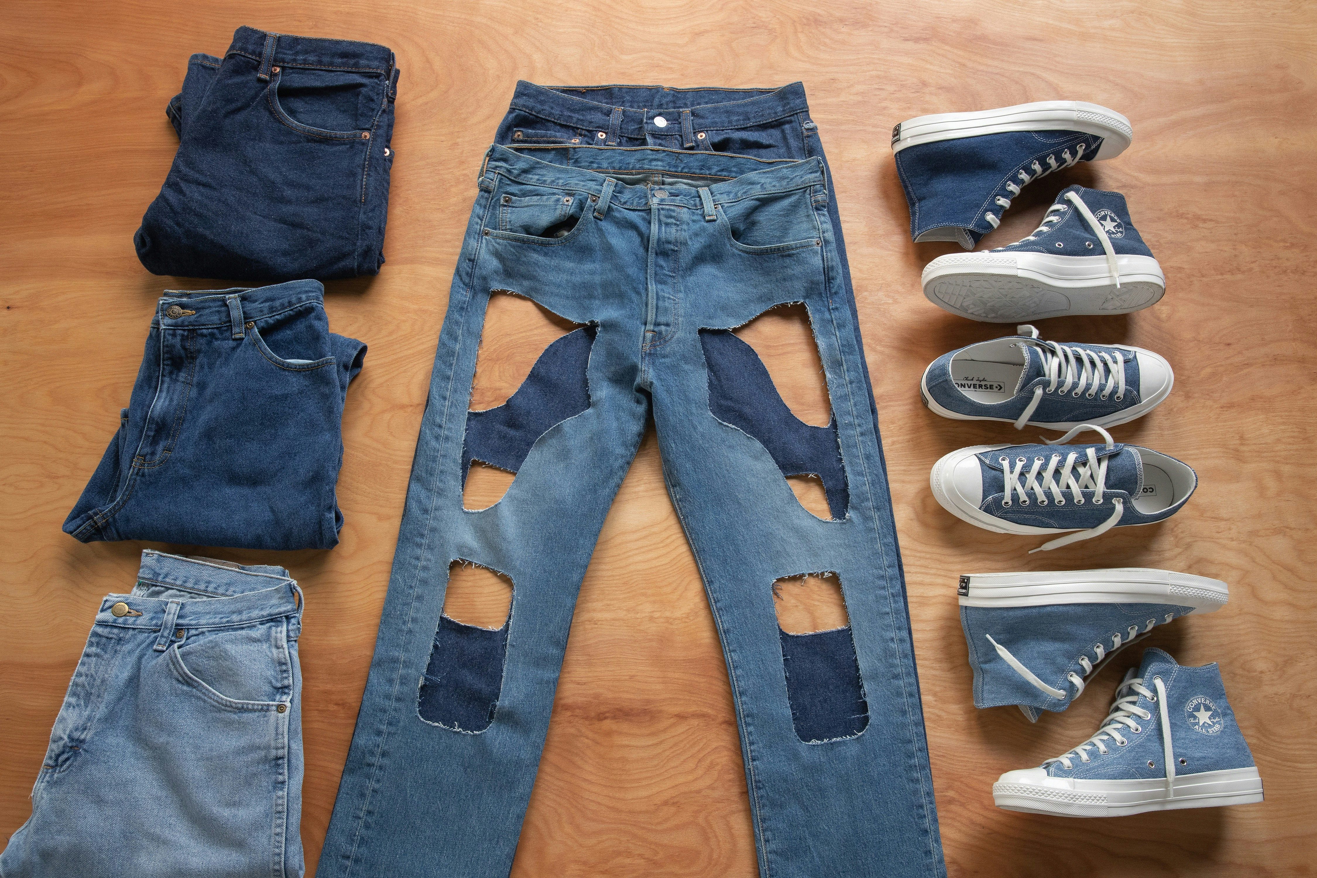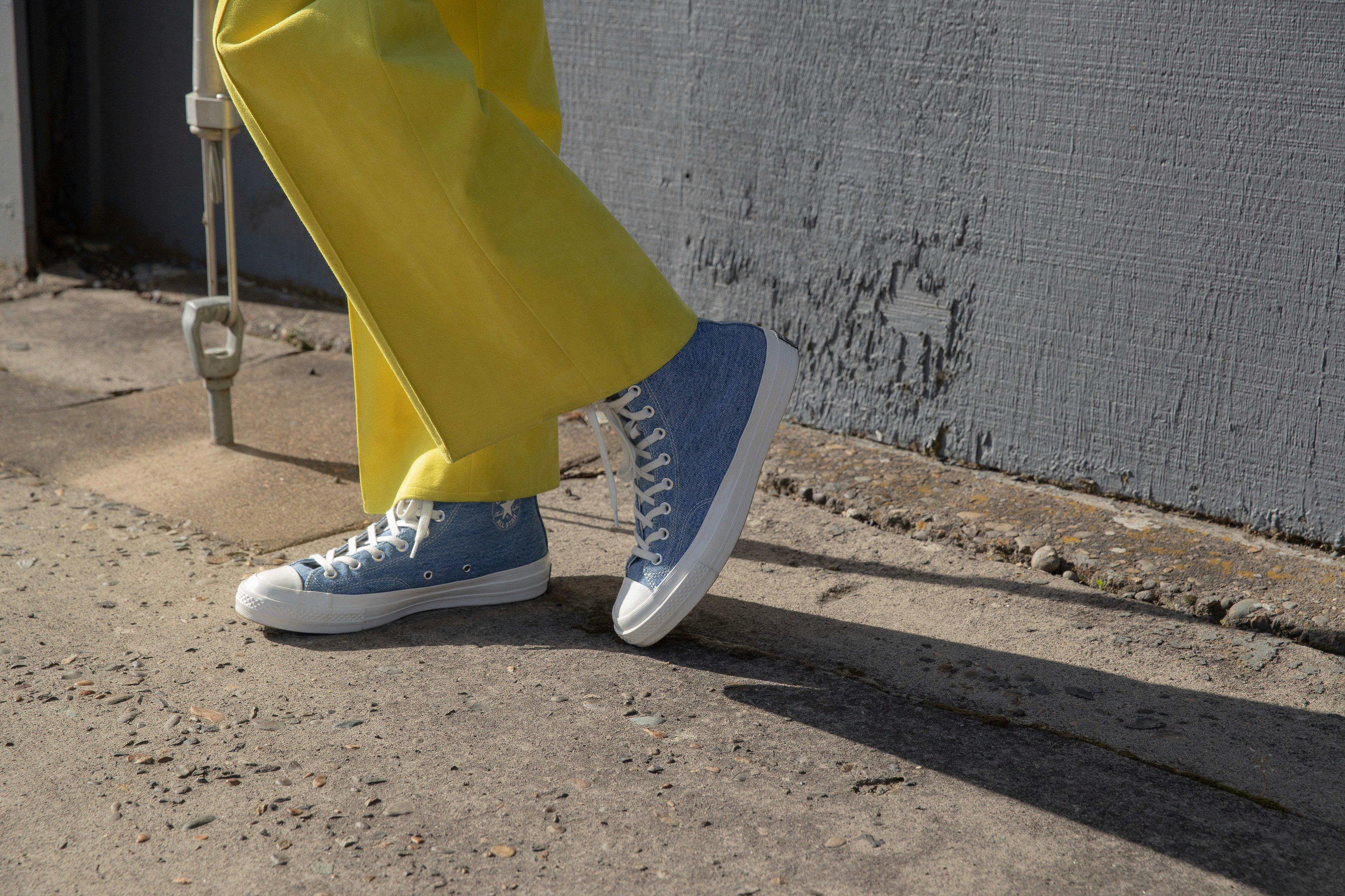 Aber hey, Converse hat noch mehr News zu bieten. Diesmal wird es nachhaltig! Für die zweite Converse Renew Kollektion hat sich das Unternehmen mit Beyond Retro aus UK zusammengetan, die Vintage Mode verkaufen. Für die Converse Renew Denim werden Schuhe aus alten Jeans produziert – ein nachhaltigerer Weg, als mit neuen extra hergestellten Stoffen zu arbeiten. Das Gute bei den neuen (alten) Chucks? Anders als bei der Suche nach der perfekten Levi's Jeans, müsst ihr euch hier nicht in tausend verschiedene Modelle hineinzwängen, um endlich die Jeans zu finden, die wie angegossen sitzt. Nein, ihr könnt einfach eure Schuhgröße kaufen – und los geht's!