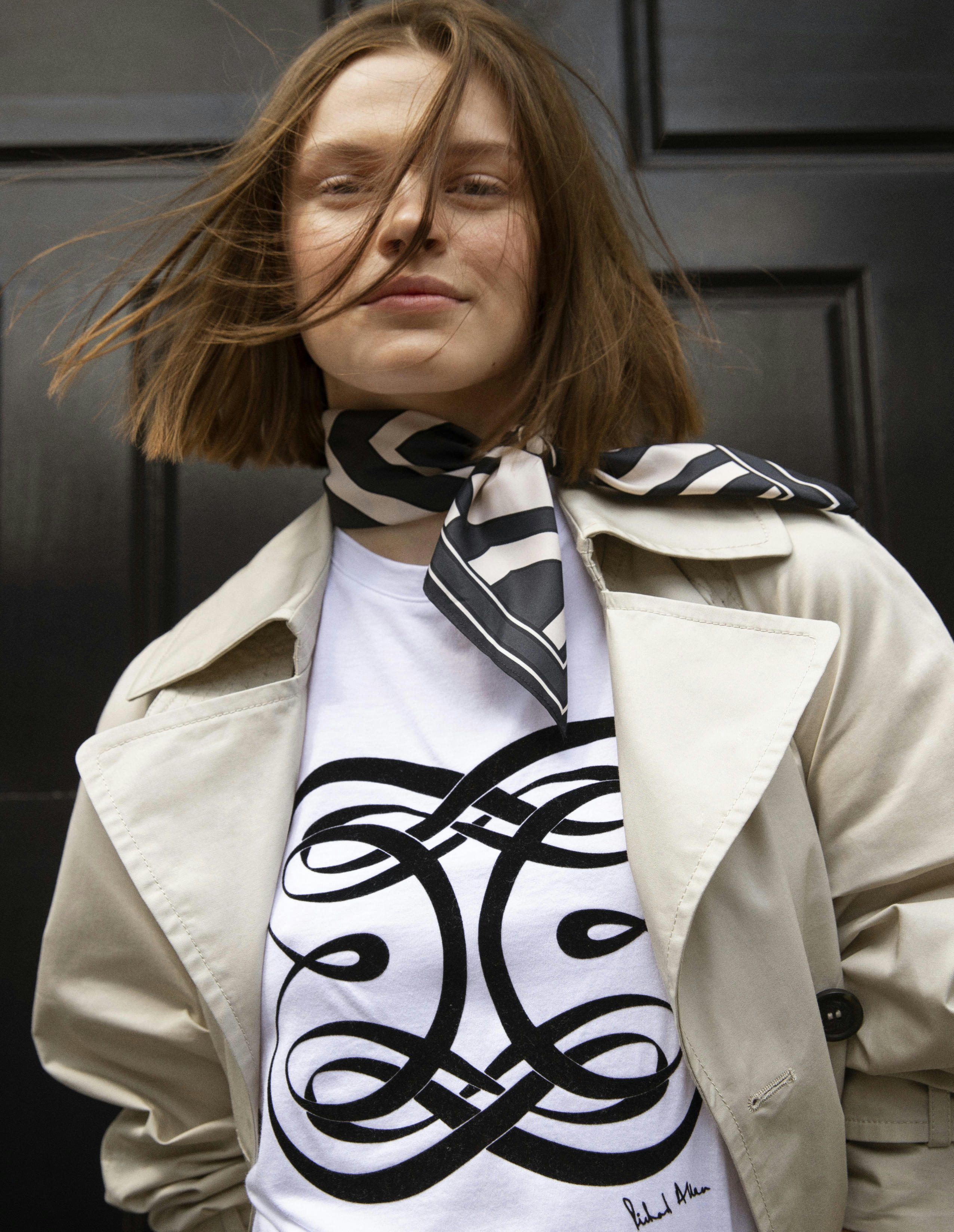 Da bin ich mir beim Anblick der neuesten H&M Kooperation mit Richard Allan zumindest ziemlich sicher. Wer ist der gute Herr, fragt ihr euch? Richard Allan gehört zur britischen Mode wie Vivienne Westwood. 1962 gegründet, wurde der Designer schnell für seine Prints bekannt – und erreichte mit ihnen schnell Kultstatus. Das Subjet seiner Wahl? Seidenschals! Ob ins Haar gebunden, an den Taschenhenkel, um den Hals oder an der Hüfte – die Tragemöglichkeiten sind vielfältig! Das erkannte auch seine Tochter Cate Allan, die das Unternehmen 2014 wiederbelebte und jetzt mit der Zusammenarbeit mit H&M zeigt, dass die legendären Prints aber auch mehr können als „nur“ Schals.