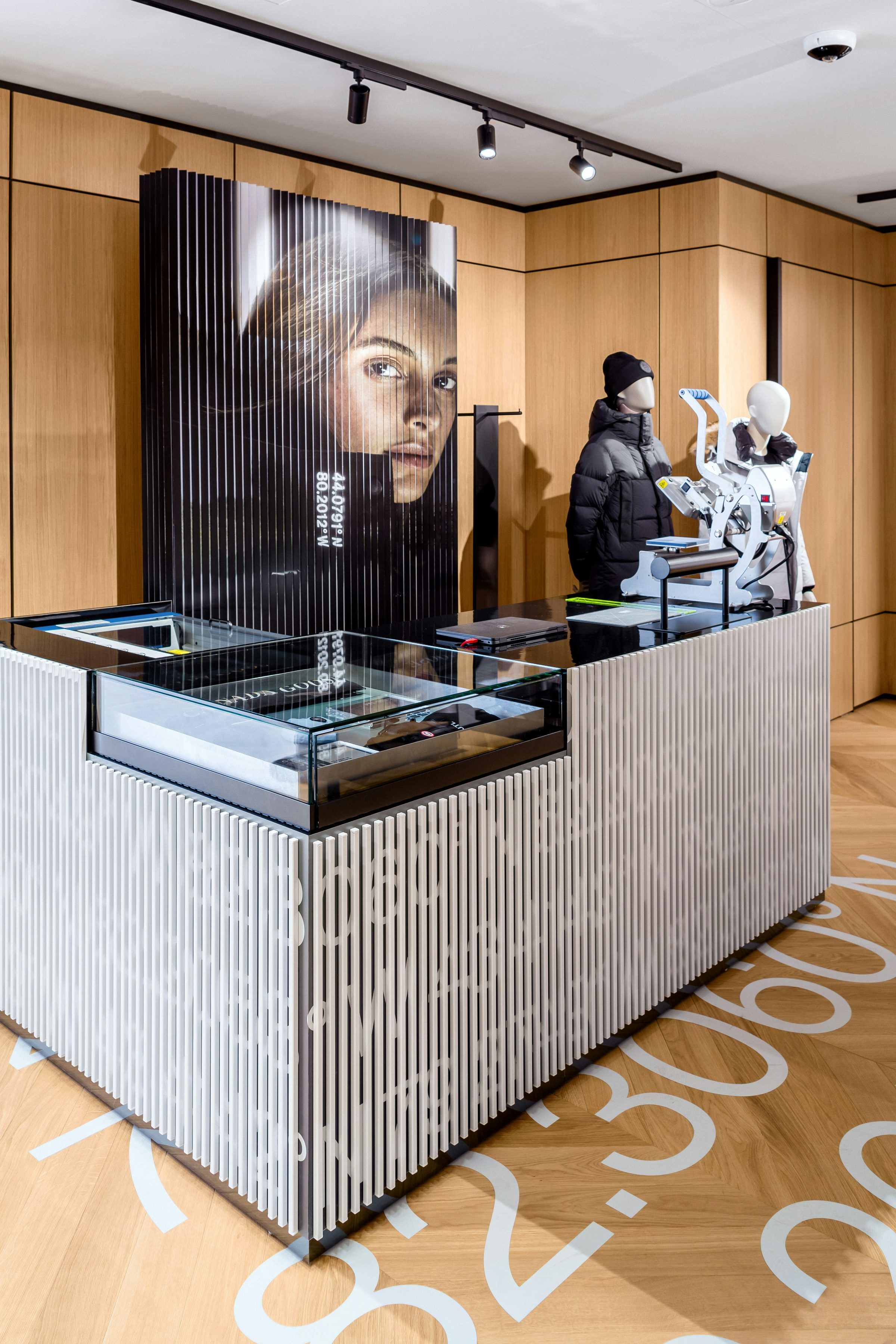 Die Storefront, die einem sofort ins Auge sticht, ist übrigens von der Berliner Künstlerin Julia Benz, die an der Kunstakademie Düsseldorf und an der UdK Berlin studiert hat. Sie hatte die Möglichkeit im Rahmen der In-Residence-Initiative von Canada Goose das Schaufenster des neu eröffneten Stores zu gestalten.