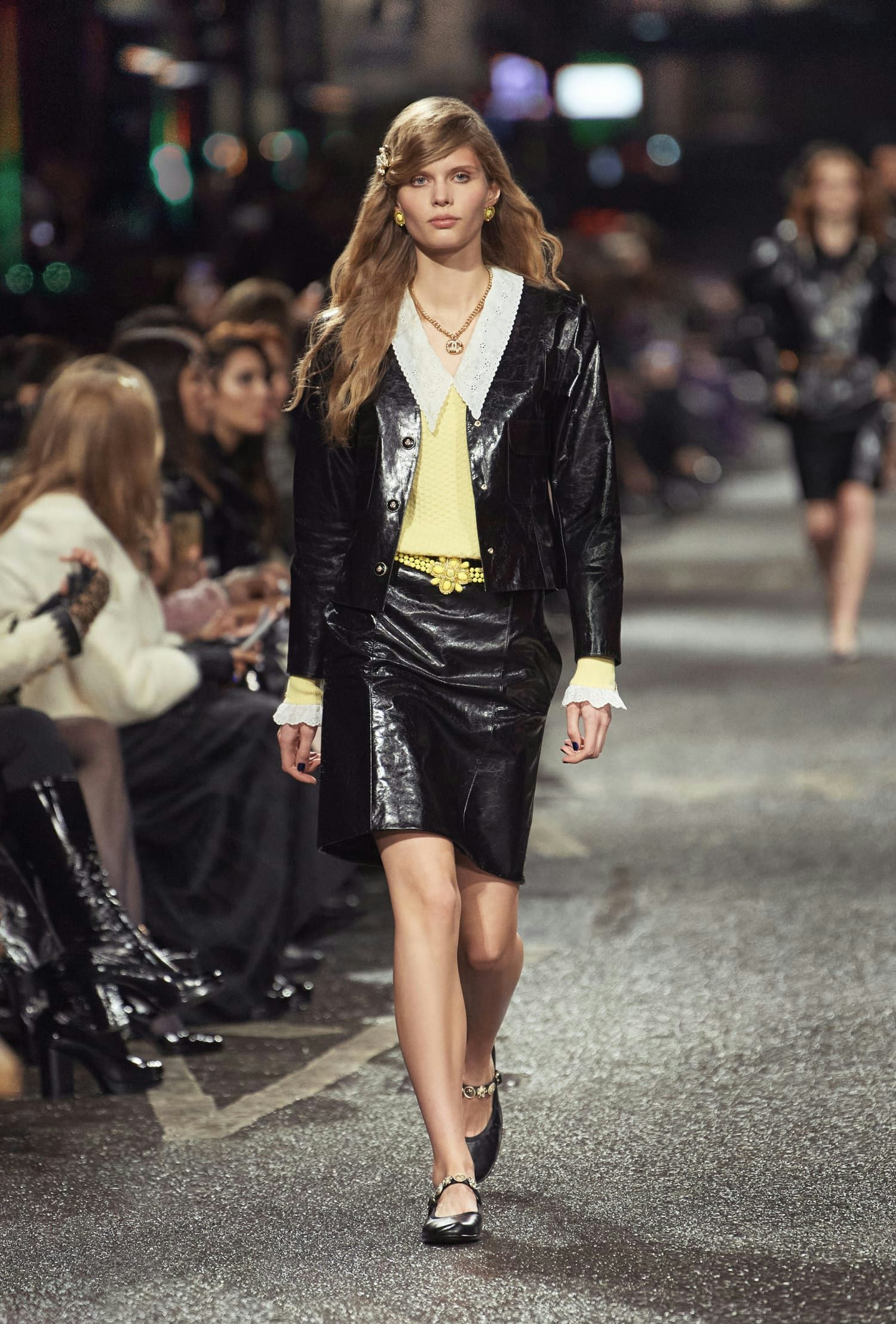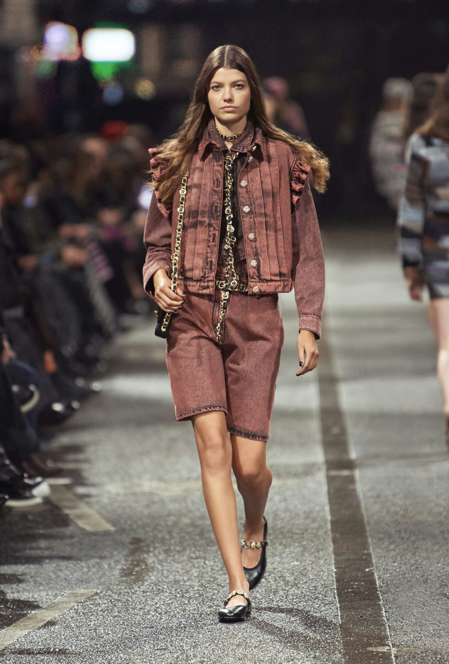 „Tweed ist ein zentraler Bestandteil dieser Kollektion. Ich habe viel über Gabrielle Chanel nachgedacht, aber ich wollte nicht den Look von Coco nachahmen, als sie die Jacken des Herzogs von Westminster trug. Ich orientierte mich an der Coco, die Farbe in ihren Tweed brachte. Ich habe ihnen einen lebendigen, poppigen Spirit verliehen. Manchester ist die Basis für eine Musikkultur, die das Gesicht der Welt verändert hat. Heute ist es der Treffpunkt für alle, die sich damit identifizieren. Für mich ist Manchester die Stadt der Musik“, erzählt Virginie Viard. „Sie regt zum Kreieren an.“