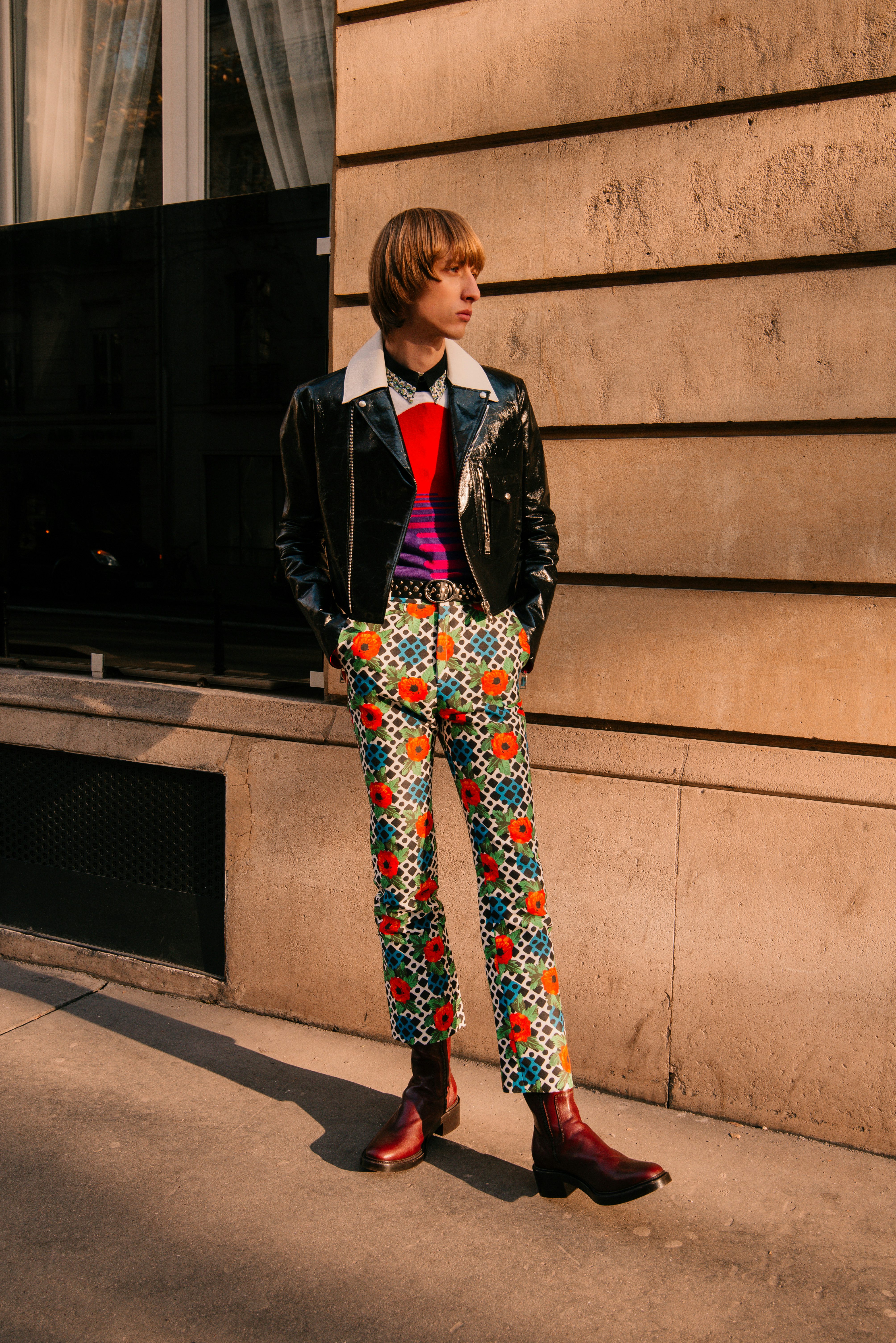 Ich liebe meinen Freund ja sehr. Nur ein bisschen mehr modischen Mut würde ich mir wünschen. Mal etwas anderes als schwarze Skinny-Jeans und Cashmerepullover, das wäre nicht nur schön, sondern sogar ziemlich aufregend. Mein Herz hat jedenfalls höher geschlagen, als mich die neue exklusive Kollektion von Paco Rabanne bei Matchesfashion erreichte. Das nenne ich mal Retro-Männerlooks! Egal ob Lacklederjacke mit Shearling-Kragen, neonorange gestreifter Pullover, Gänseblümchen-Rolli oder Flowerpants – ich würde gerne alles haben und meinen Freund (und mich, ist ja unisex hehe) neu in den 60er- und 70er-Jahre-Looks einkleiden! Paco Rabanne verwandelt so Alexa Chung in einen Mann – und in den würde ich mich sofort verlieben, sorry!