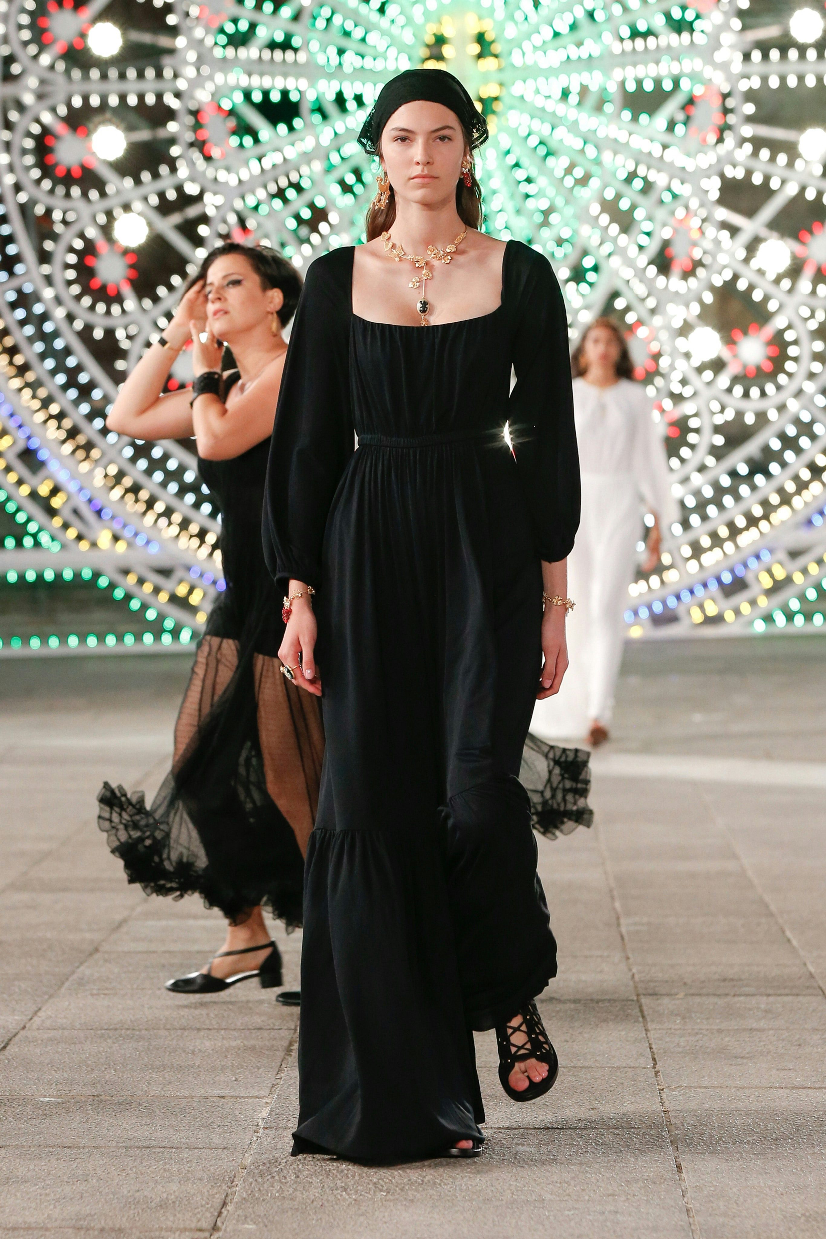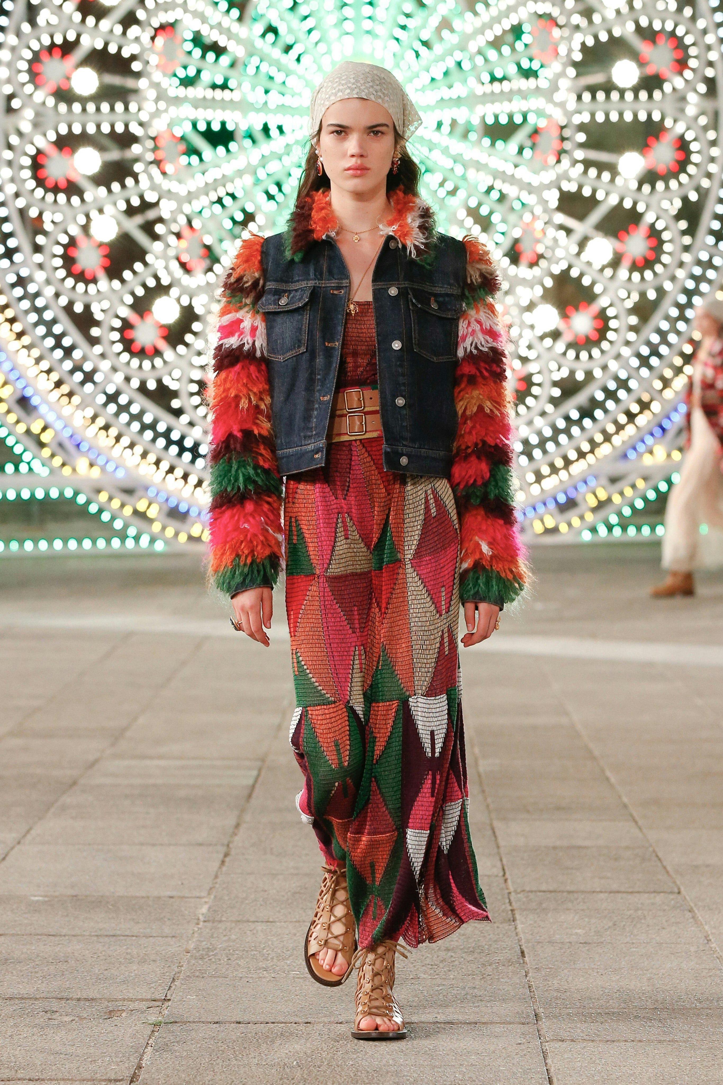 Was sie von dort erspähen konnten? Eine Festa di Piazza, mit extravaganter Licht-Kreation von Miranella Senatore und Kleidern in Hülle und Fülle. Ob Häkelei, Bestickung, Besatz oder Strick … es war alles andere als simpel. Die Siebziger-Jahre feierten mit, Schlag, Folklore und eine Nahbarkeit lag in der Luft, dass man die hohen Preise der einzelnen Stücke fast schon vergessen konnte. Leider.