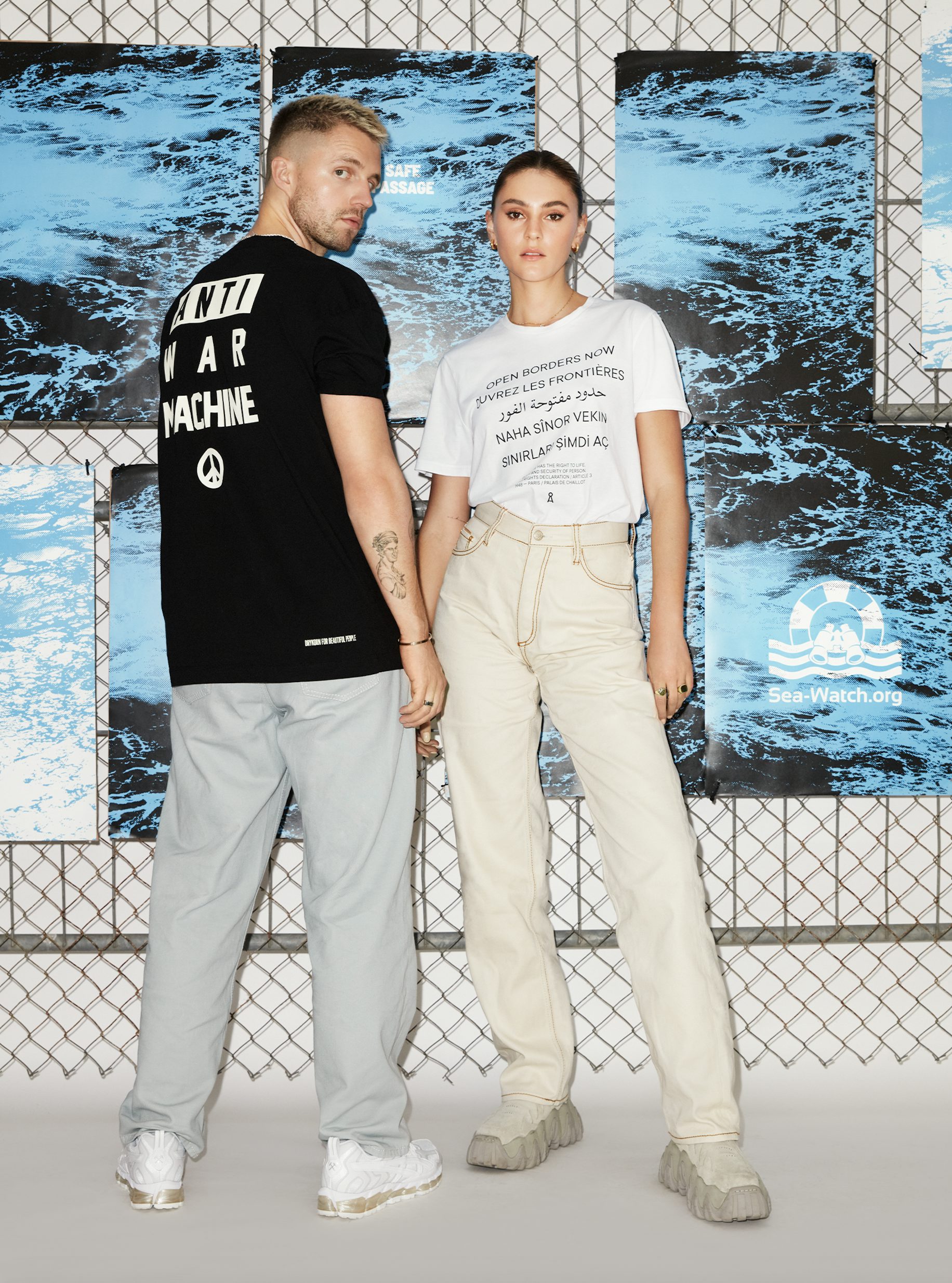 Die Berliner Agentur Dojo hat jetzt die Initiative „Verantwortung tragen“ gegründet, unter deren Schirmherrschaft bekannte Designer*innen und Brands eine Kollektion designt haben, die die zivile Seenotrettung unterstützt. Ihr wollt ein paar Namen? Na klar! Mit dabei sind Marina Hoermanseder, Armedangels, Drykorn und Mvschi Kreuzberg, für die Kollektion gemodelt haben Stefanie Giesinger und Freund Marcus Butler, Lena Meyer-Landrut, Caro Daur, Palina Rojinski, Lisa-Marie Koroll, Kida Khodr Ramadan, Hikmet Sugoer und viele mehr.