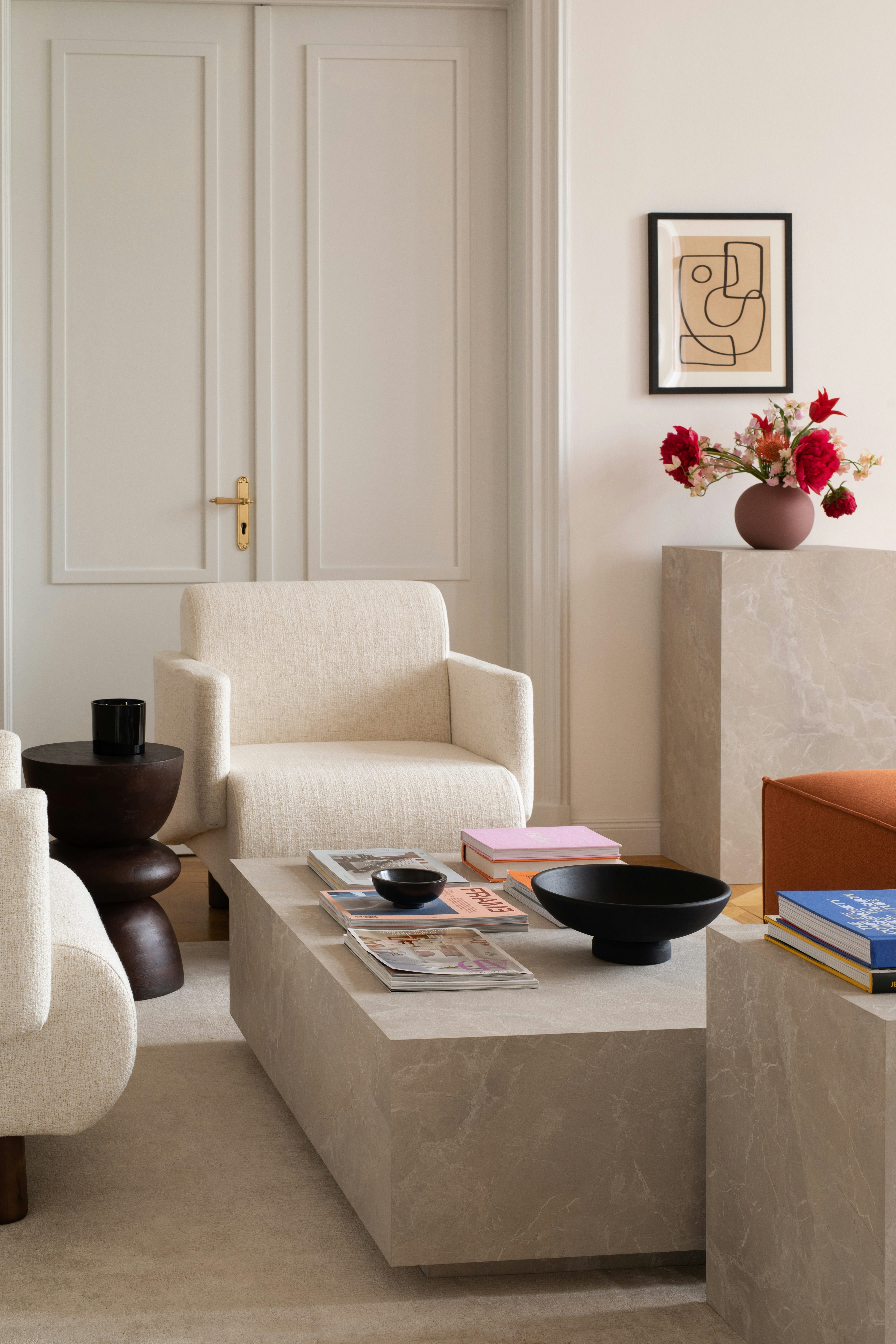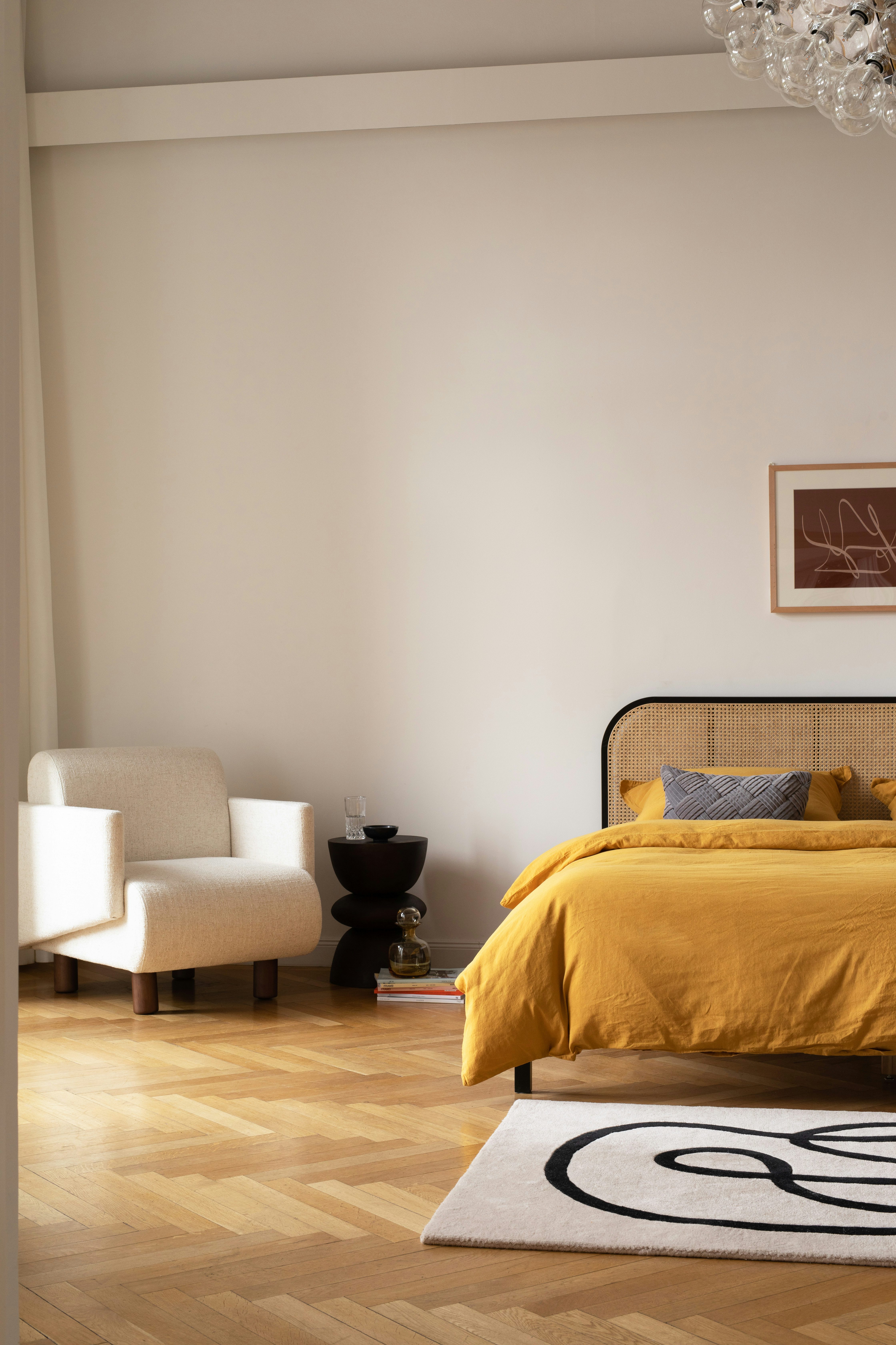 Das Geheimrezept für einen französischen Retro-Look? Die Grundelemente werden alle in schlichten Farben wie Beige und Natursteintönen ausgewählt, der Materialmix aus Tweed, Wolle, Seide und Leinen wirkt hochwertig und Akzente setzt man dezent, aber gewollt, wie z.B. mit einem Sofa oder der Bettwäsche. Bon shopping!
