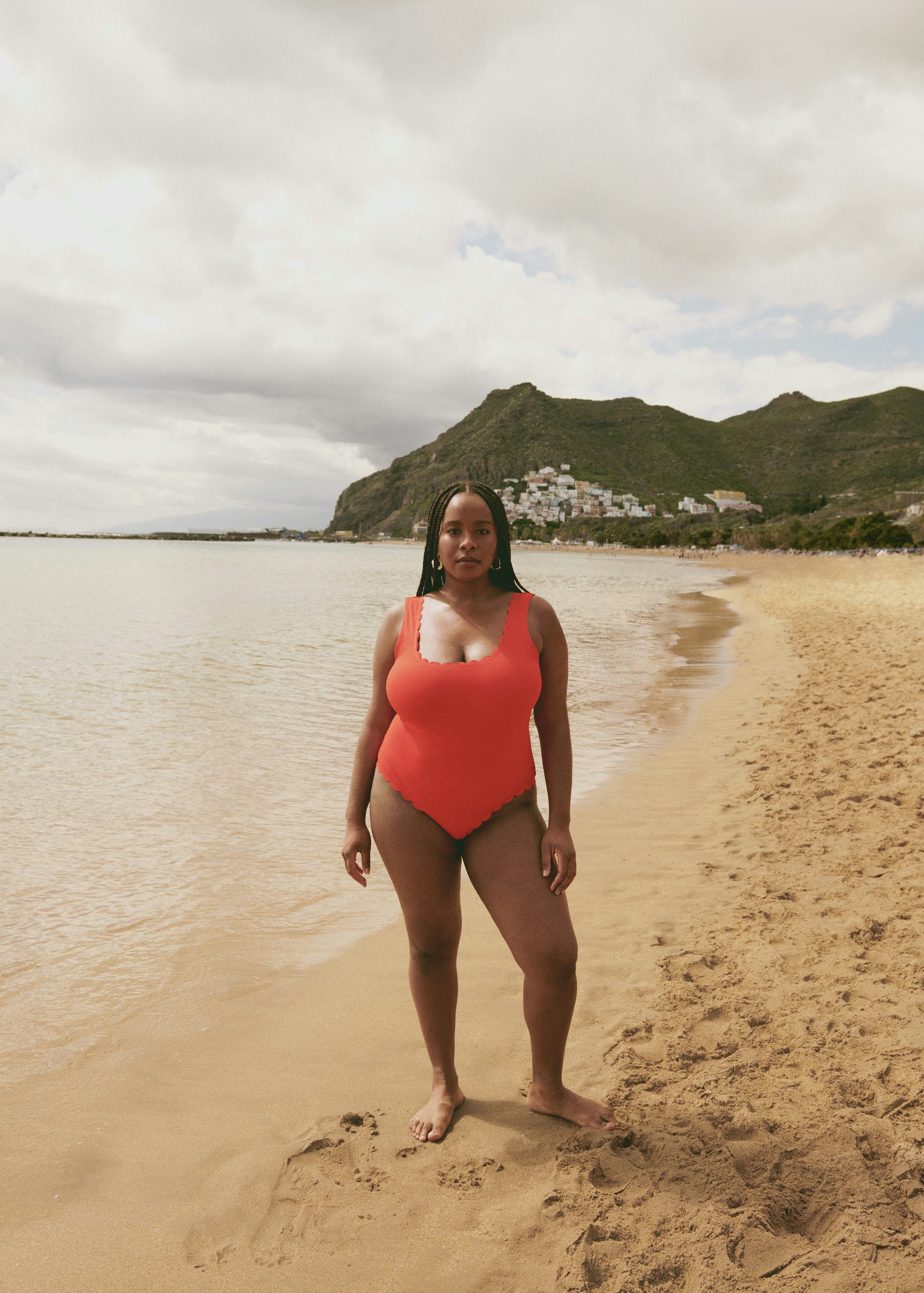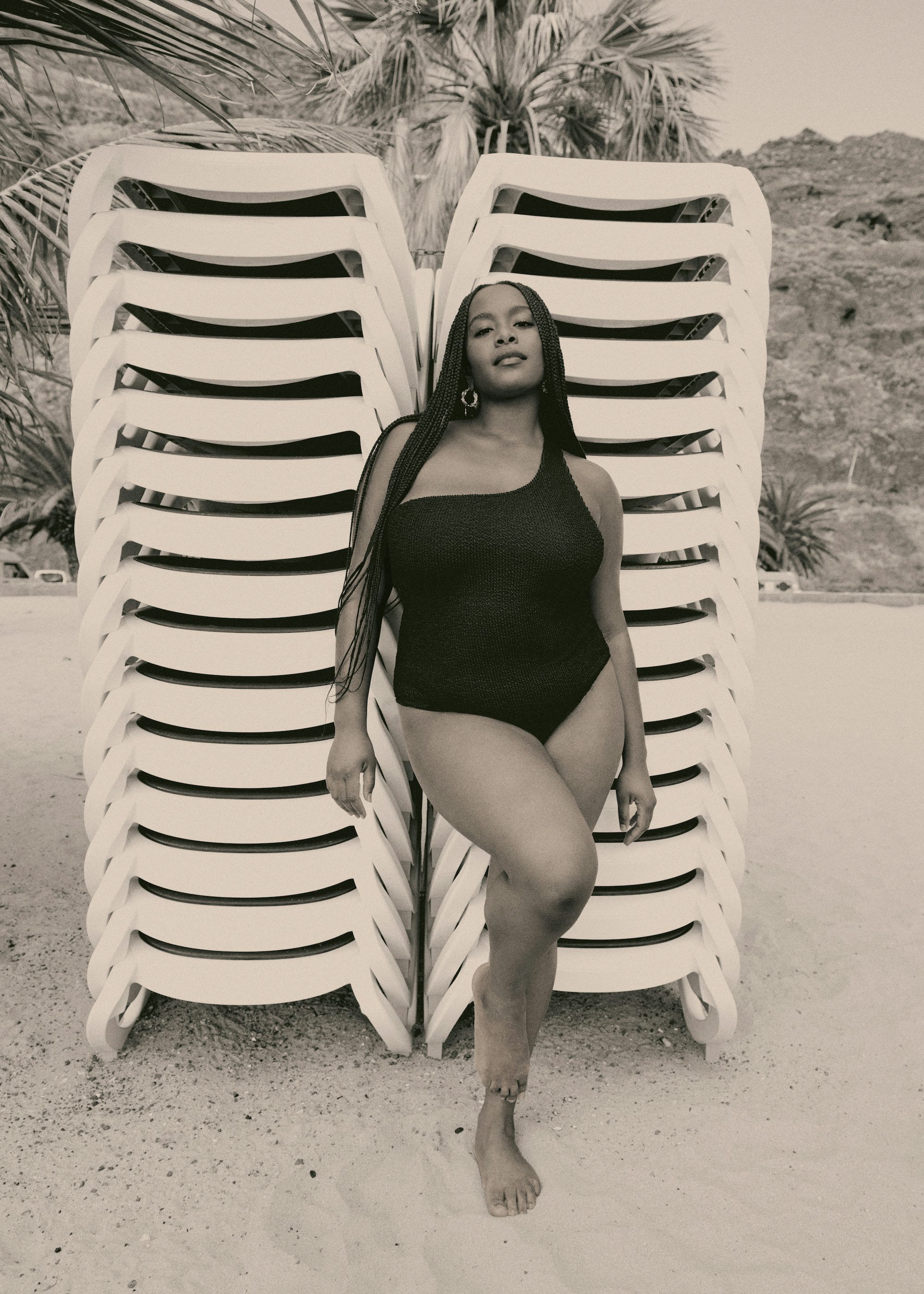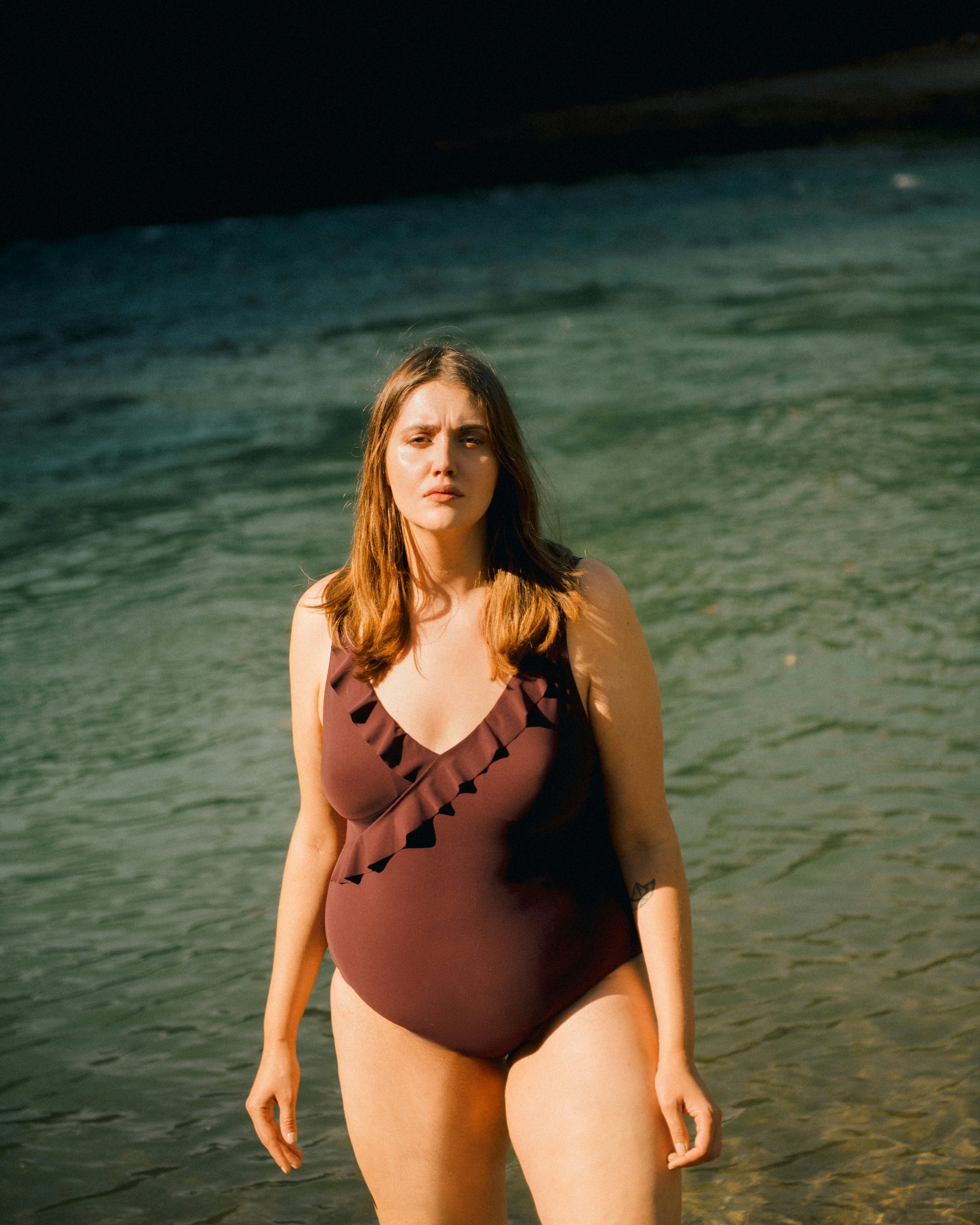 Die Kollektion, die aus einem Badeanzug und einem Bikini-Set besteht, gibt es bis Größe 48 – und da Lovis den Anspruch hatte, endlich bequeme und qualitative Swimwear zu designen und die Modelle selbst auf Herz und Wasser getestet hat, können wir uns sicher sein: da sitzt alles!