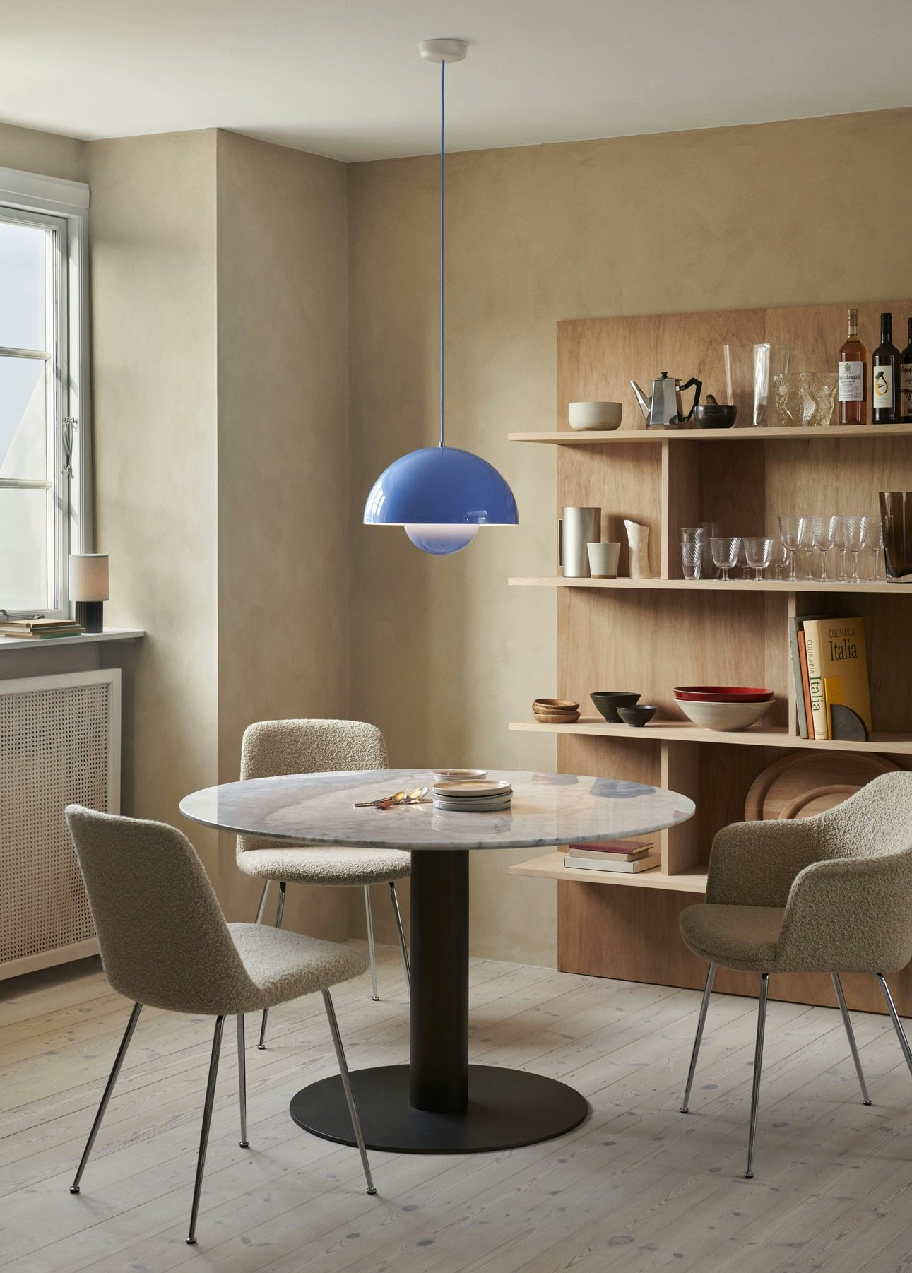 Mein absolutes Highlight: Zum ersten Mal zeigt sich die Flowerpot in einem Muster, nämlich im Siebziger-Jahre-Black-and-White-Look. Schon ganz ganz ganz ganz weit oben auf meiner Wunschliste für meinen Geburtstag. Die neuen Farben? Dark Plum wird von &Tradition selbst als das neue Schwarz bezeichnet. Swim Blue bringt Frische, das Kobaltblau wurde aus den Archiven wieder aufgelegt und gehört zu den Originalfarben von Panton, Tangy Pink bringt den sogenannten Pop of Color und Vermilion Red zitiert den Klassiker: einen roten Lippenstift.