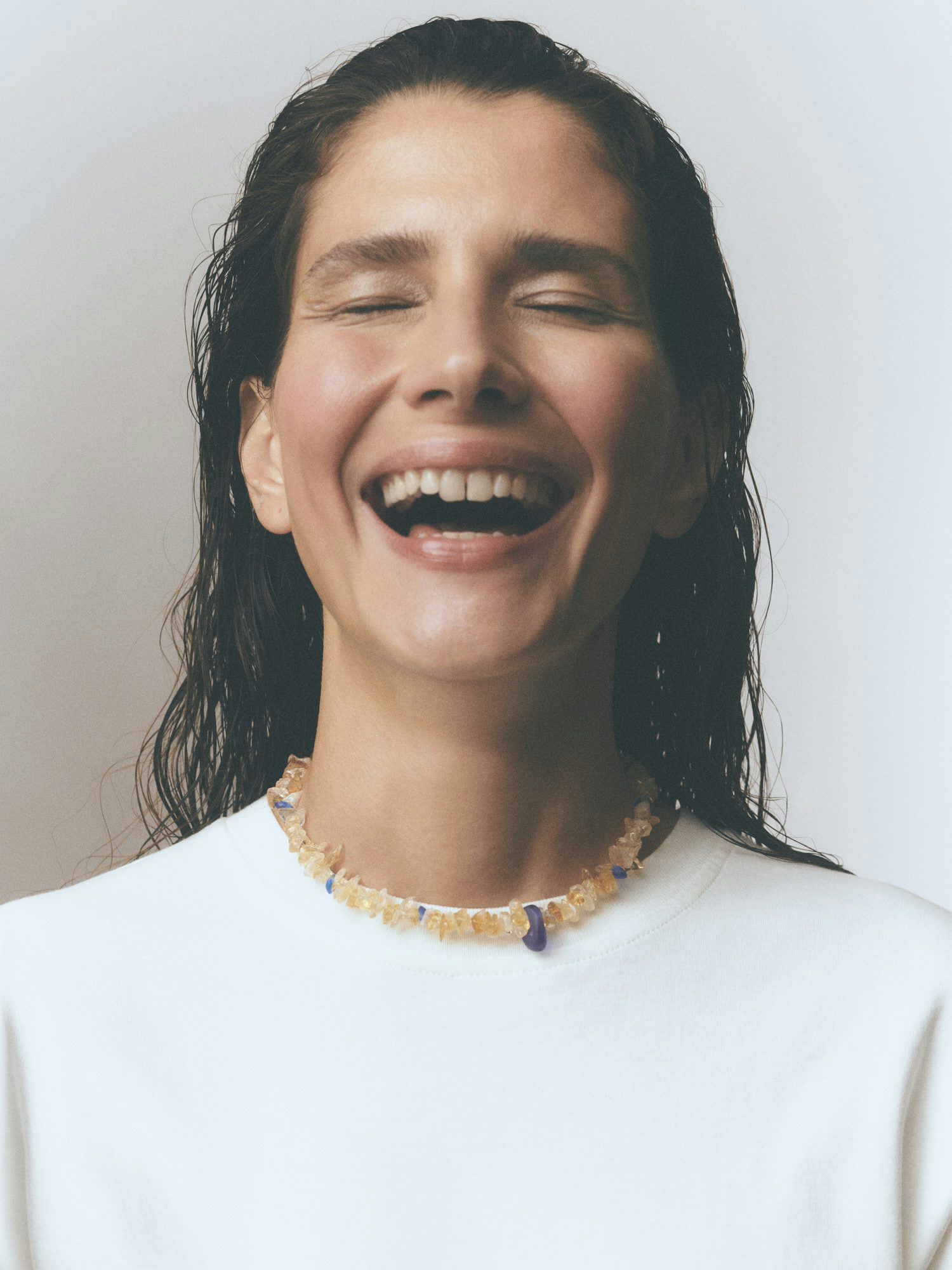 Wenn zwei meiner Favoriten sich schon zum dritten Mal zusammentun, dann kann es ja nur gut werden. Die Rede ist von Model und Schmuckdesignerin Dari Maximova und Closed, die für die bevorstehende Weihnachtszeit eine kleine, aber sehr feine Capsule Collection launchen. Vier Teile, eine Statement-Kette aus gelben Citrinen und blauem Glas, zwei Paar Ohrringe und eine vergoldete Halskette mit Nugget sind Geschenke, über die sich bestimmt viele freuen. Kein Wunder, denn die Designs erscheinen mir das perfekte Match zur Blue Jeans – das ist bestimmt kein Zufall!