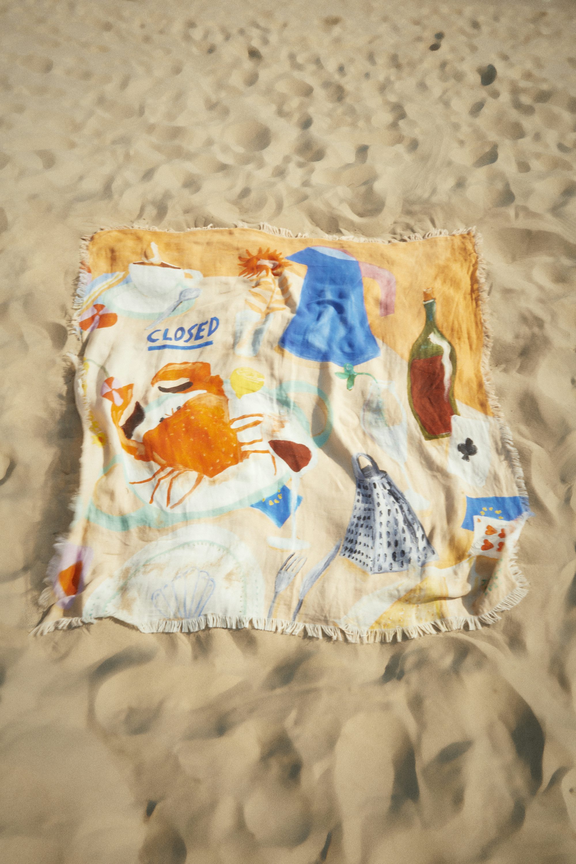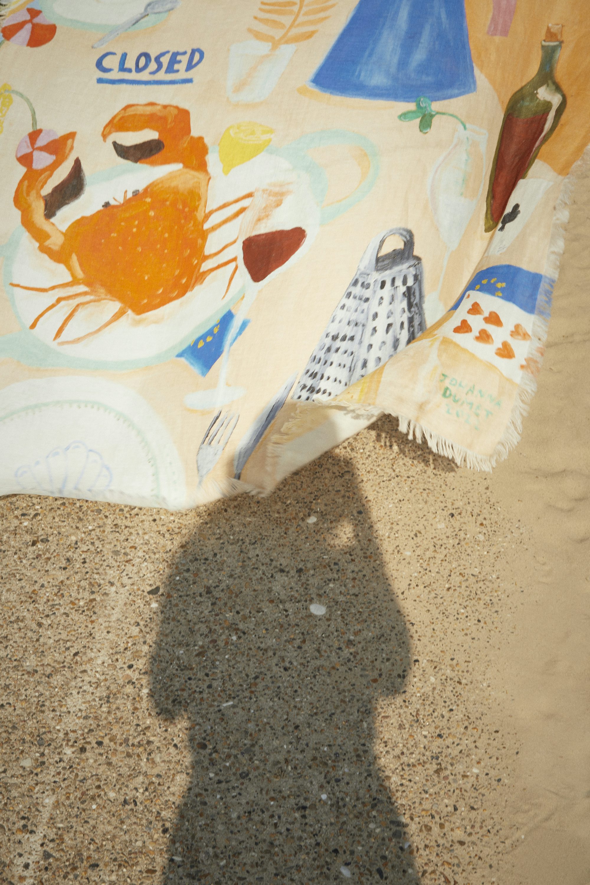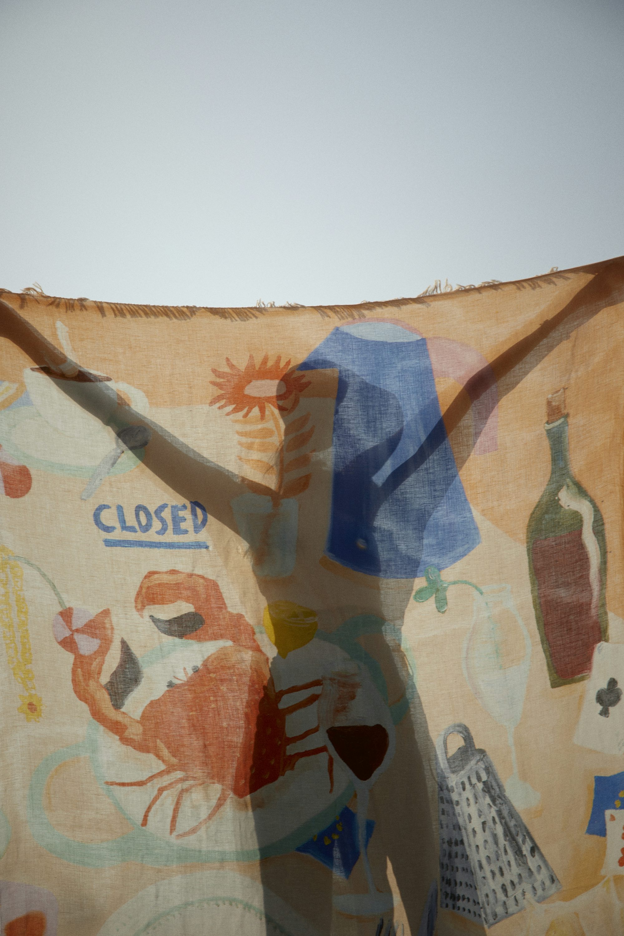 Im neuen Design strahlt also nicht nur die Herbst-Winter-Kampagne, sondern auch eine tolle neue Künstlerinnen-Kooperationen, die in Berlin mit dem schönsten Event gefeiert wurde: Johanna Dumet hat für das Unternehmen ein wunderschönes Tuch gestaltet. Sie zeigt das Kunstwerk „We are Closed, going where the sun is“, das Johanna exklusiv für den Closed Minimarket gemalt hat – den Closed-eigenen Gift-Shop mit Produkten aus europäischer Produktion.