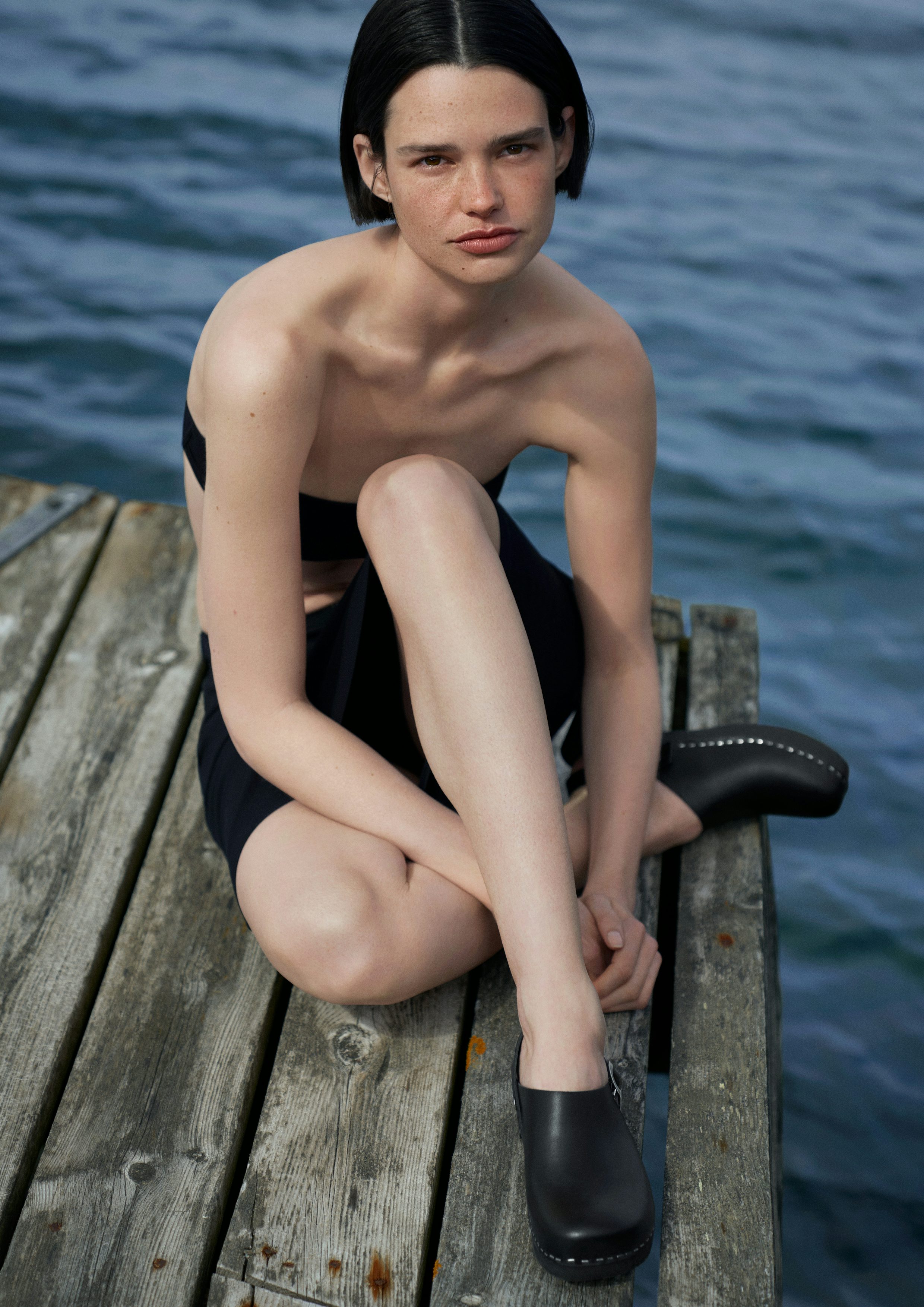 Der erste Drop der Zusammenarbeit stellt die Backstrap Clogs in drei Farbvarianten vor: Schwarz, Natur und Schlangen-bedruckt. Die drei Modelle könnt ihr ab sofort online shoppen!
