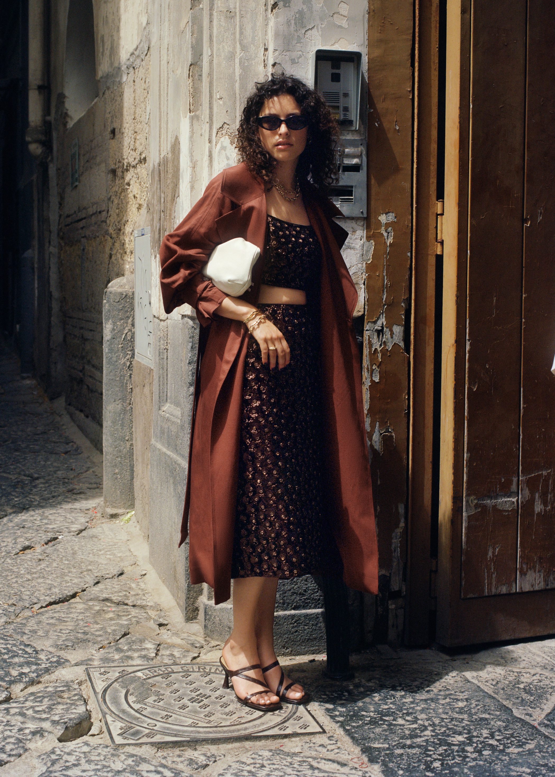 Nachdem wir unsere Liege schon mit einem Handtuch von Closed reserviert haben, können wir den Tag danach in Looks von & Other Stories genießen. Denn das schwedische Brand nimmt uns mit auf eine Reise in den Süden, allerdings ungewohnt für Italiener*innen in sehr zurückhaltenden, natürlichen Farben. Als Ausgleich zu all der Neutralität gibt es dann aber jede Menge Pailletten für den Aperitivo-Look!