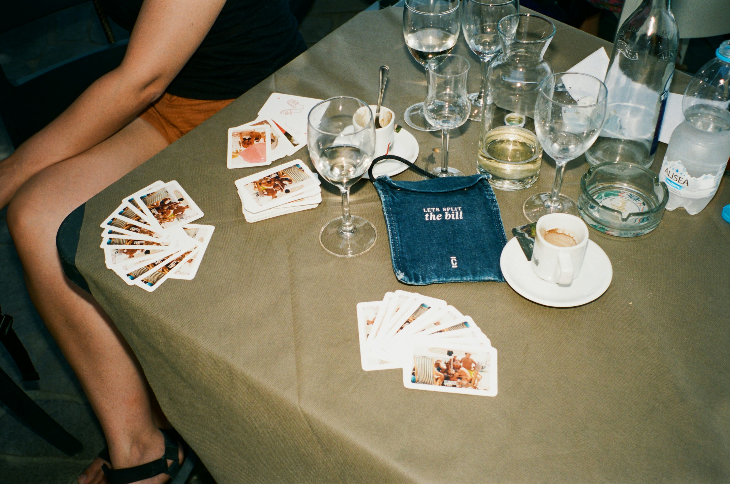 Aber nicht nur das Reservieren der Handtücher nimmt Closed damit auf den Arm, die anderen Accessoires der Kollektion betrachten auch das Teilen der Rechnung, das berühmte Kartenspiel am Stammtisch und das Lieblingskleidungsstück von 50+, nämlich das Polo-Shirt, mit einem Augenzwinkern – denn natürlich ist das Polo-Shirt ein Motto-Shirt vom FKK Club.