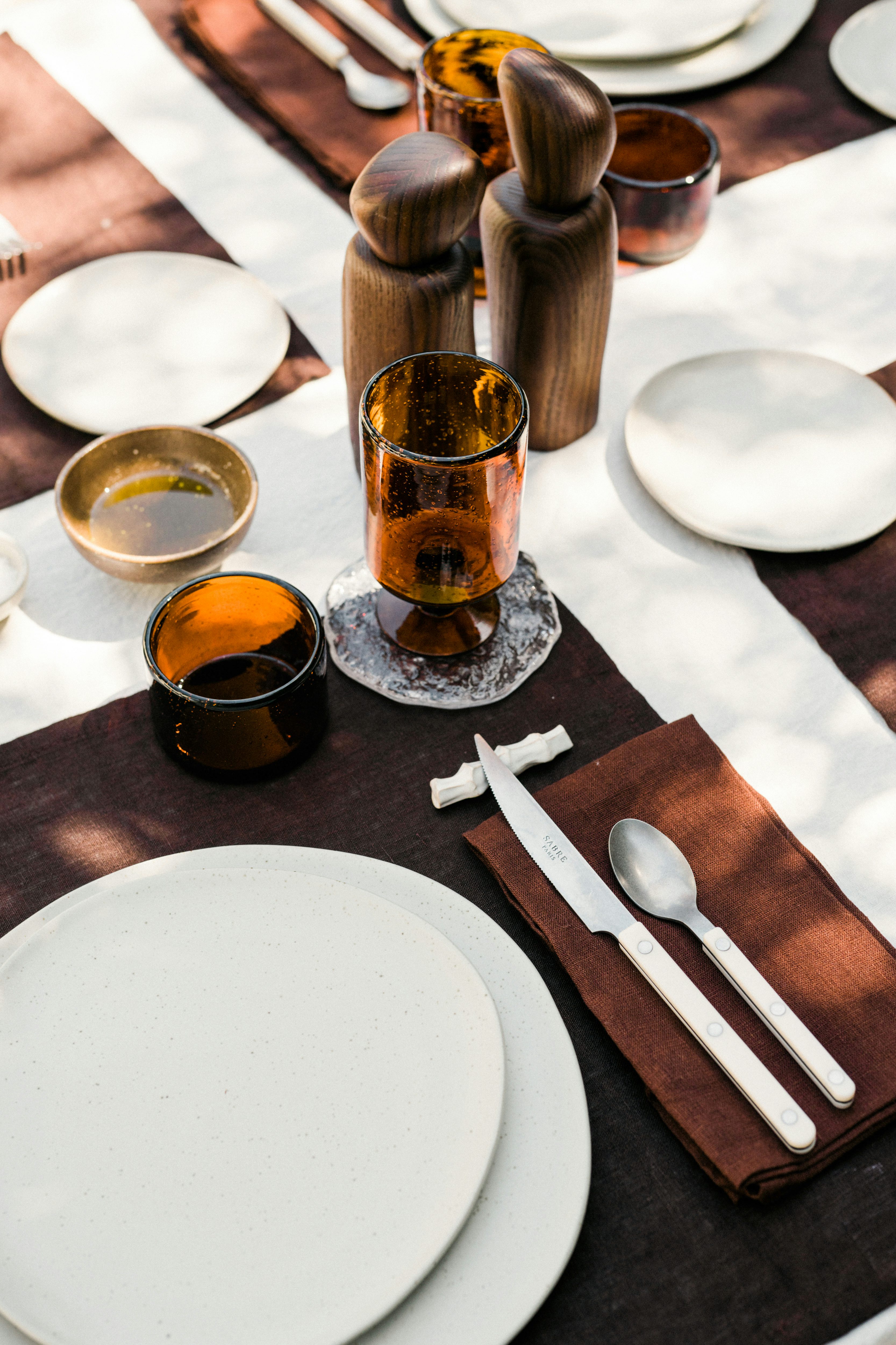 Darunter waren unter anderem Kerzenlicht, frische Blumen, eine lässige Playlist … und beide verwenden gerade gerne in der Deko-Erdtöne – das passt auch bestens zu den neuen Retro-Gläsern von Ferm Living.