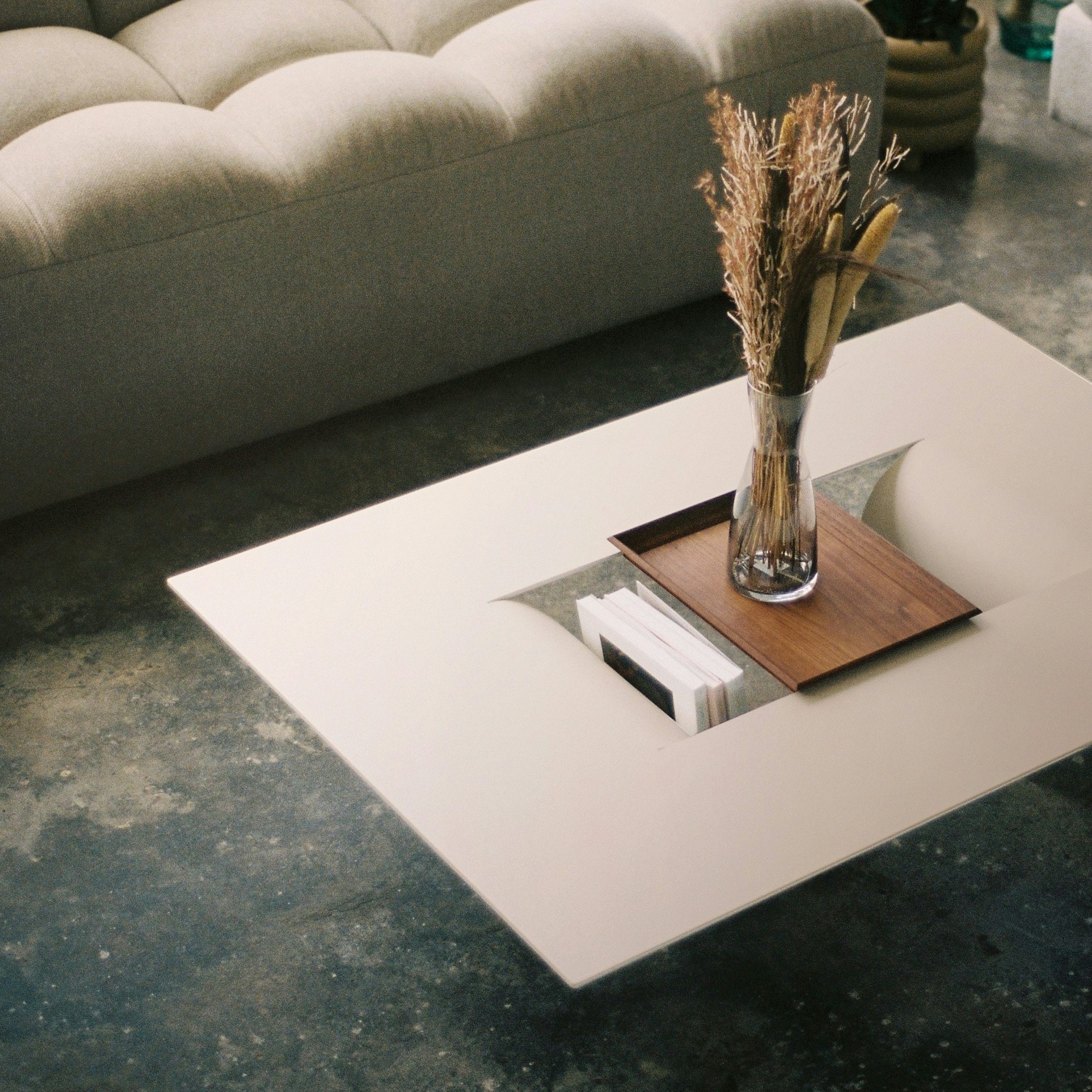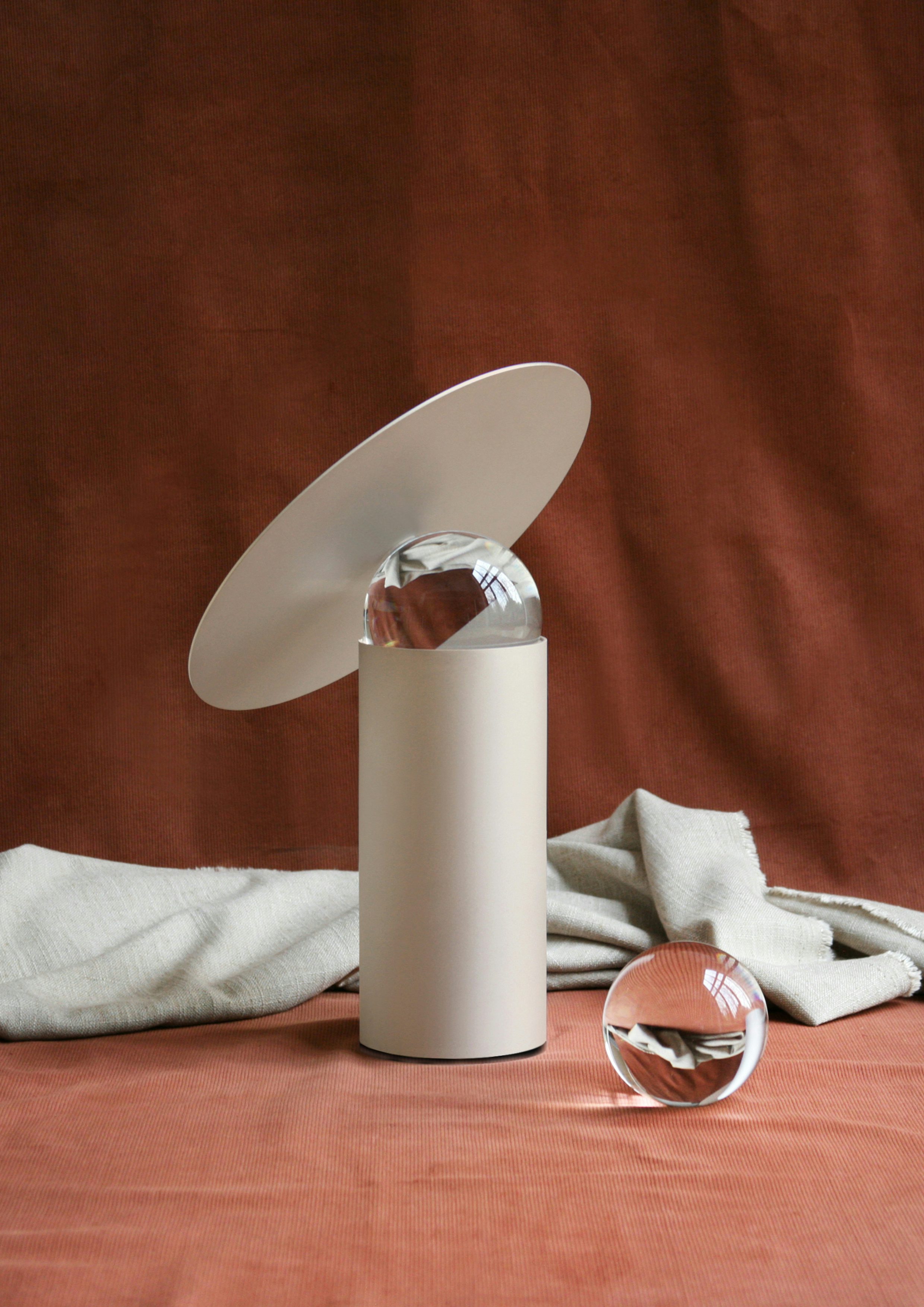 Was Budde und die Designs ausmacht? Eine klare Linienführung, simple Designs, die sich in viele Wohnungen eingliedern können und doch herausstechen, eine nachhaltige Herangehensweise. Die zwei Produkte, die mir besonders im Kopf hängen geblieben sind, sind der Couchtisch Cut, der durch seine Öffnung in der Mitte Objekte oder eben auch ein Tablett gezielt in Szene setzen kann, aber auch die Lampe Sfir, die durch ihren Schirm und die Glaskugel eine spannende Mischung aus Planet, Mensch und Skulptur ist.