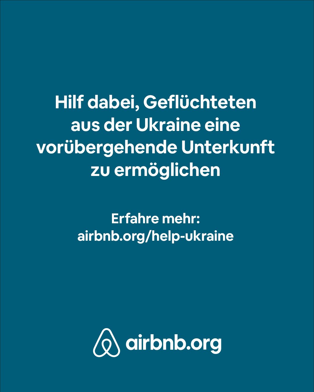 Airbnb hat sich überlegt, dass sie dabei helfen können. Sie übernehmen die Kosten für eine vorübergehende Unterbringung für bis zu 100.000 Menschen – unabhängig von Nationalität, Herkunft, ethnischer Zugehörigkeit oder Geschlechtsidentität.