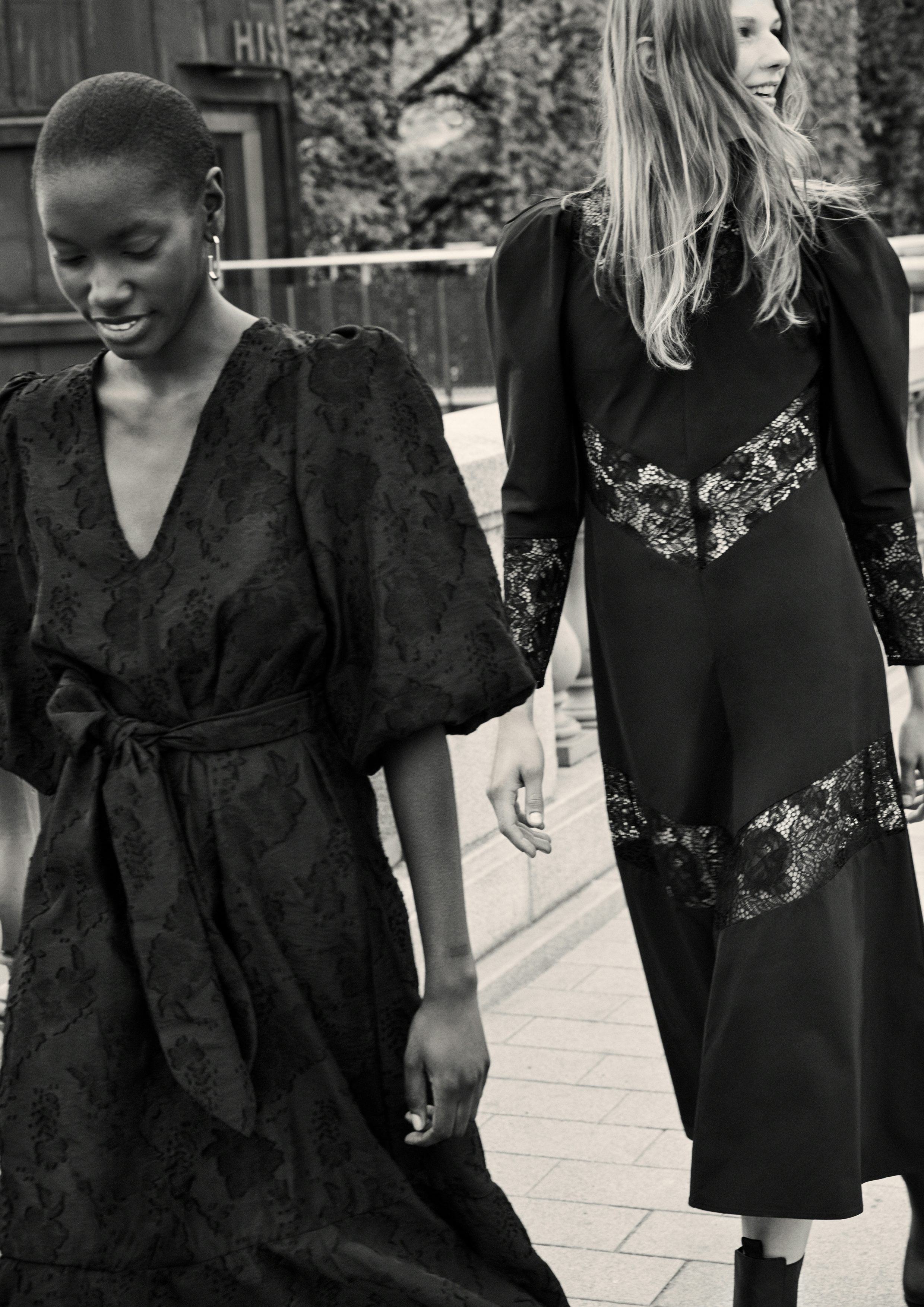Ich finde, H&M ist immer in den Übergangszeiten besonders stark, also im Herbst oder im Winter. Auch mit der neuen Fall Collection beweisen sie das, denn die ist, trotz (oder gerade eben weil) monochromen Looks extrem ausdrucksstark. Die neue Herbstkollektion findet, obwohl sie so modern aussieht, ihre Inspiration in den 1930er-Jahren, als bauschige Ärmel, Spitzendetails, mittellange Kleider und Rüschen en vogue waren.