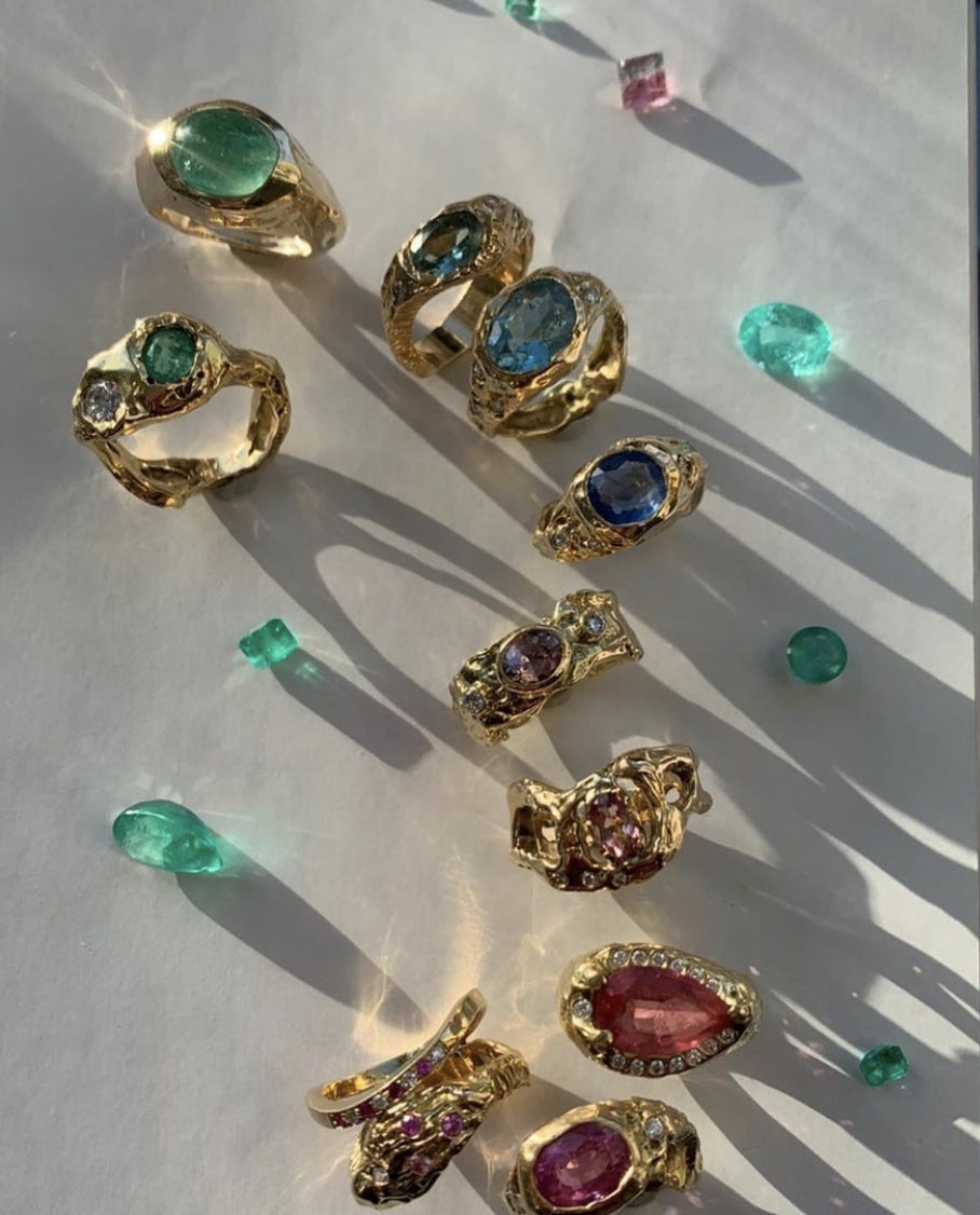 Auch Nadia Shelbaya, eine dänische Schmuckdesignerin, wurde von dem Hype um ihr eigenes Brand so überrascht, dass auch ihre Website sich derzeit Under Construction befindet. Wundert mich ehrlich gesagt gar nicht, denn Nadia wurde von der Vogue als aufsteigender Stern der Schmuck-Szene betitelt und das absolut zu Recht. In ihrem Schmuck vereint sie zwei Welten: taktiles Gold und Silber und wunderschöne Edelsteine. Vielleicht ja eine Metapher für ihre dänischen und ägyptischen Wurzeln?!
