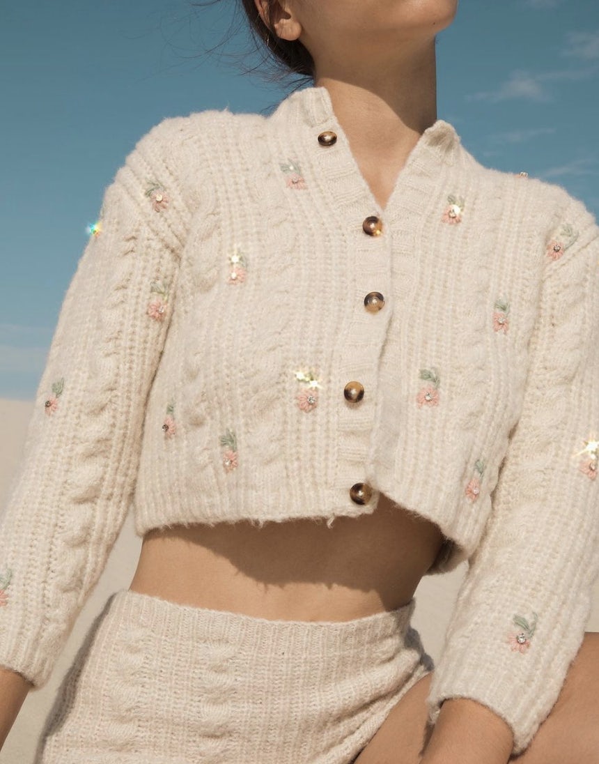 Tach Clothing wurde in Uruguay gegründet und dort wird jedes Stück per Hand gefertigt – deswegen kann es bis zum Versand auch schon mal zwei Wochen dauern, was meiner Meinung nach immer noch extrem schnell ist. Zwar fertigt die Marke neben Strick- und Häkelmode auhc noch Jacken, Kleider und Jeans an, aber die Styles aus Maschen sind definitiv der Star. Es gibt kultige Cropped Cardigans, aber auch traditionellere Pullover mit kunstvollen Blumenstickereien. Jede Saison wird das Brand besser und besser, die Kleidungsstücke einzigartiger und einzigartiger und deswegen empfehle ich euch eins: Im Blick behalten und wenn euer Herz genauso sehr für Häkelmode brennt wie meines: Bestellen!