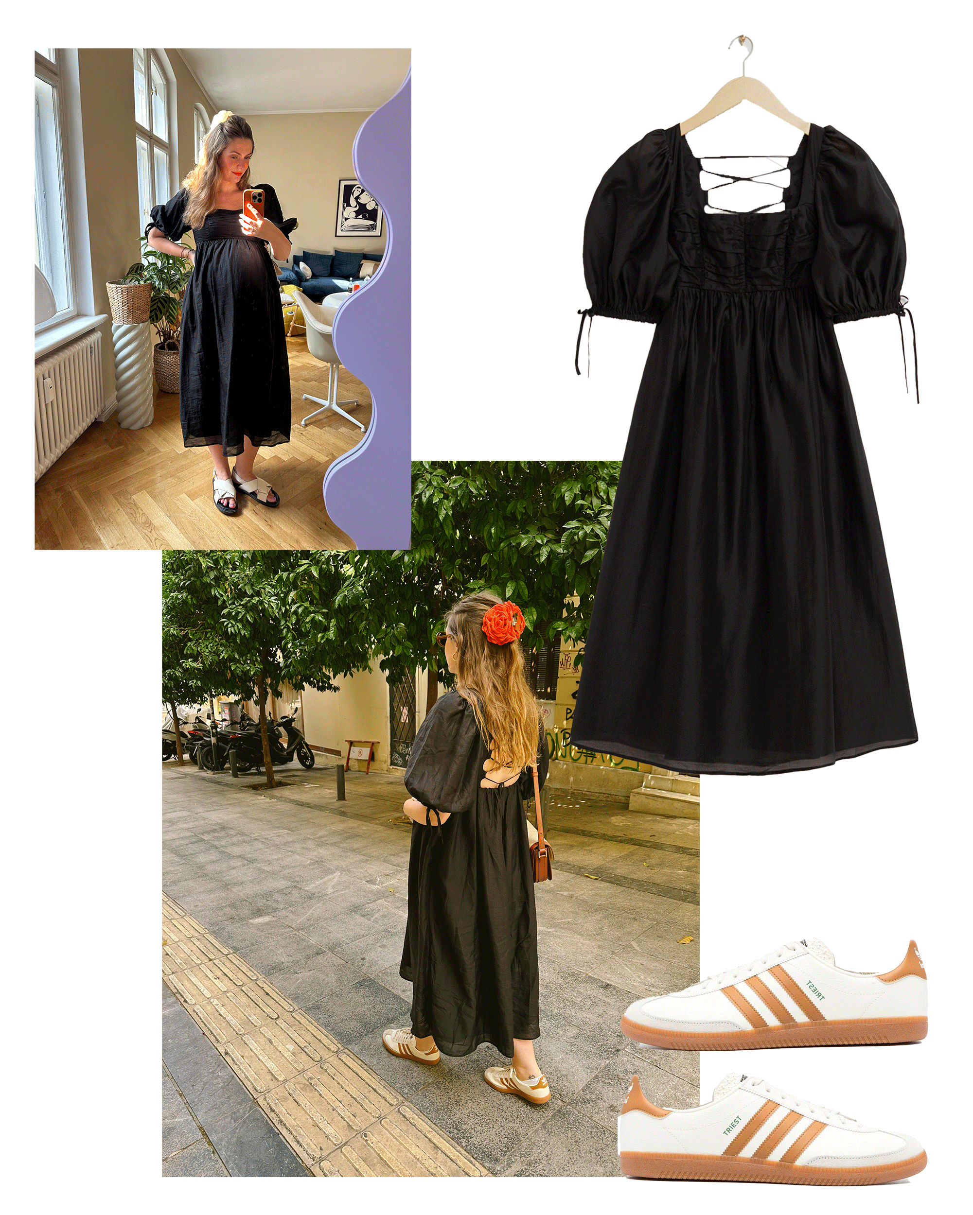 Cecilie Bahnsen sprengt gerade mein Baby-Budget, deswegen musste im Frühling die Alternative & Other Stories kaufen – und liebe sie so sehr! Ob schwanger oder nicht, das Kleid wird mich noch viele Jahre glücklich machen … ebenso wie die Adidas Sneakers, die ich rauf und runter trage!