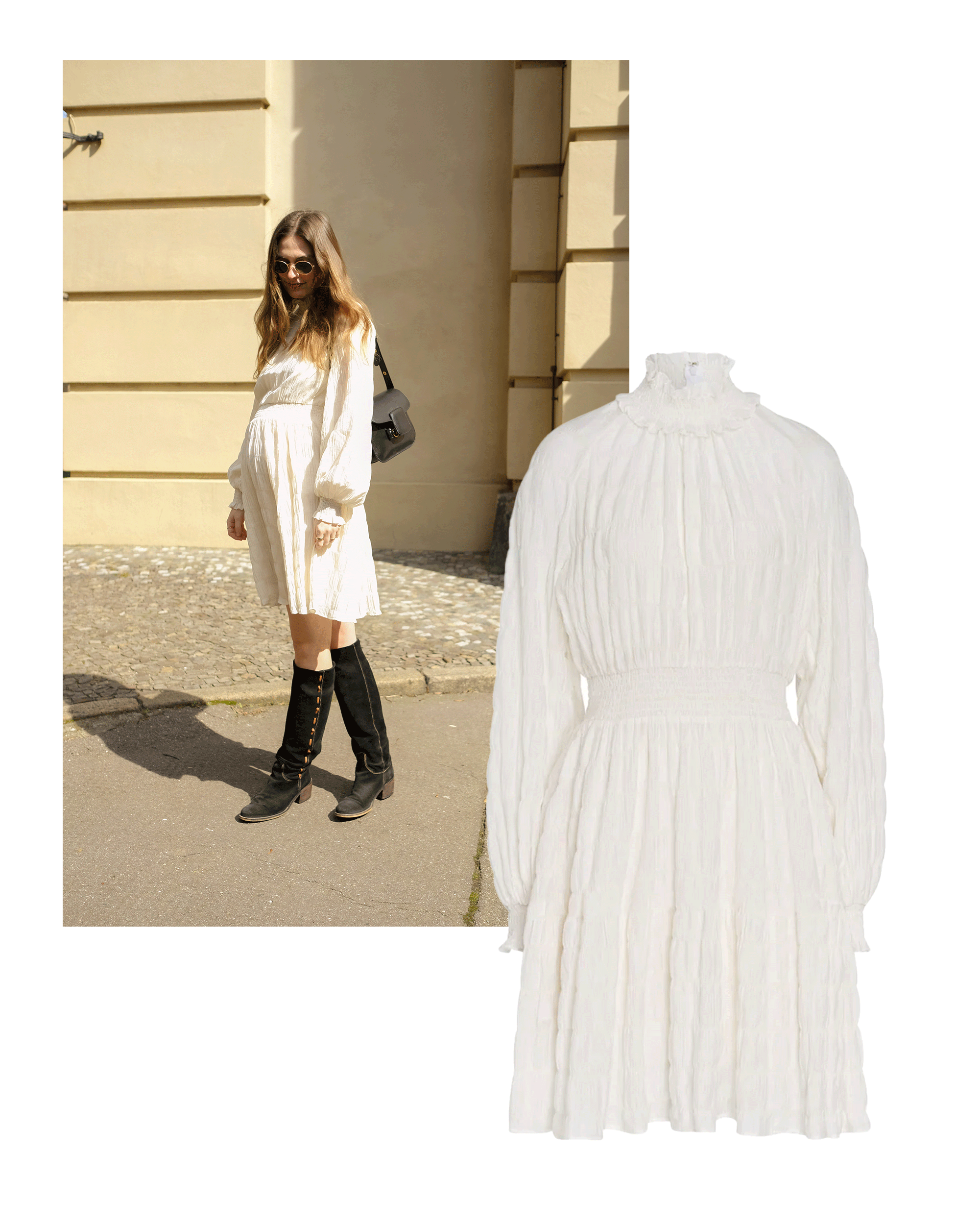Geht einfach immer: ein weißes Sommerkleid! Besonders, wenn es lange Ärmel hat und man es so auch noch easy für die ersten Herbsttage mit Weste, Jacke oder Boots stylen kann!
