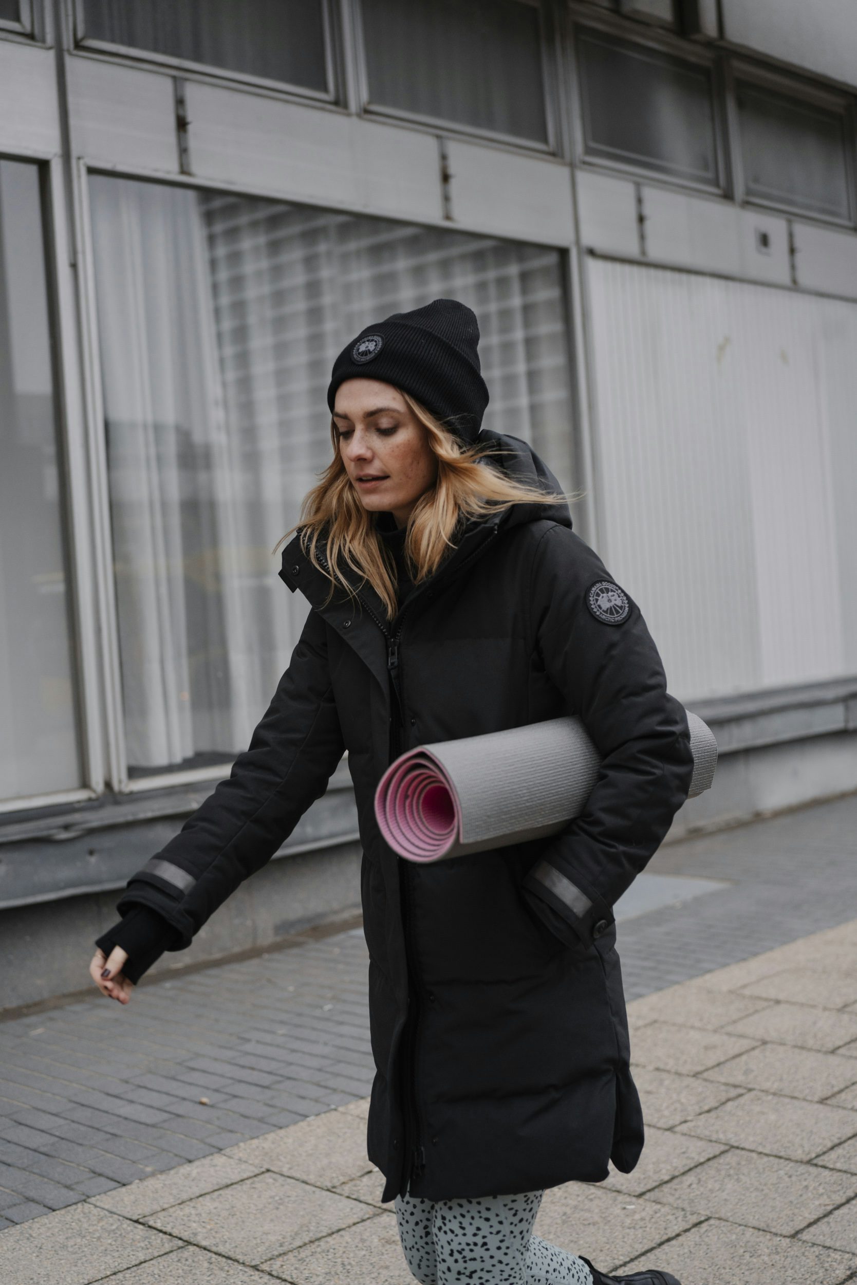 Denn für uns ist die wichtigste Zeit des Tages nicht etwa die vor dem Bildschirm, sondern die Pausen, die wir an der frischen Luft verbringen. 10.000 Schritte schaffen wir zwar nicht immer täglich, trotzdem haben wir uns als Ziel gesetzt, möglichst viel in Bewegung zu bleiben. Ob Lunch Meeting, Gassi gehen oder auf dem Weg zum Pilates – Canada Goose unterstützt uns in allen Situationen mit der richtigen Winterjacke.