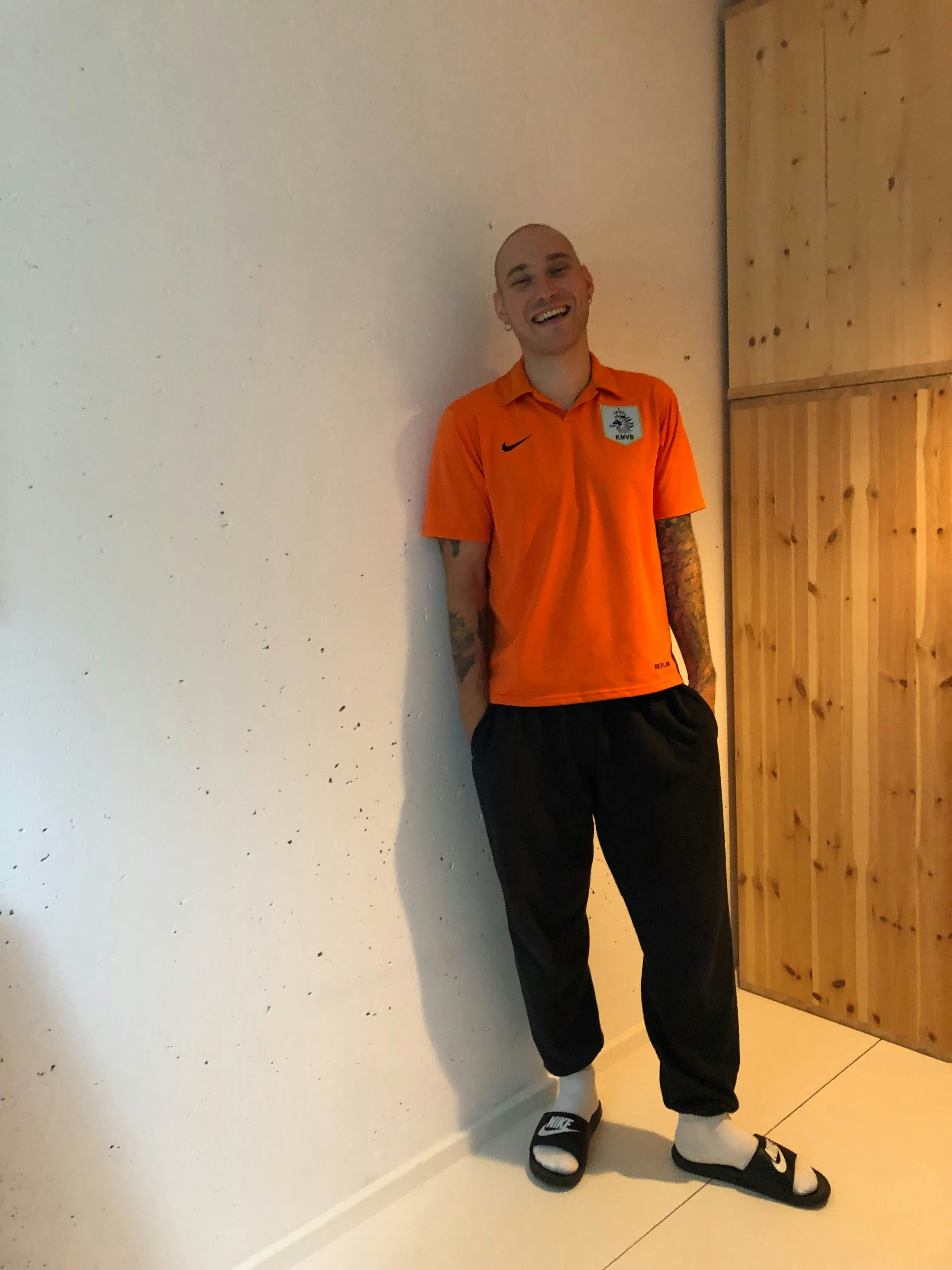 Niels' Freundin sagt: Holland? Ich dachte Hertha?! Die Hose aber nicht draußen, okay? Und weiße Socken in Sandalen ...