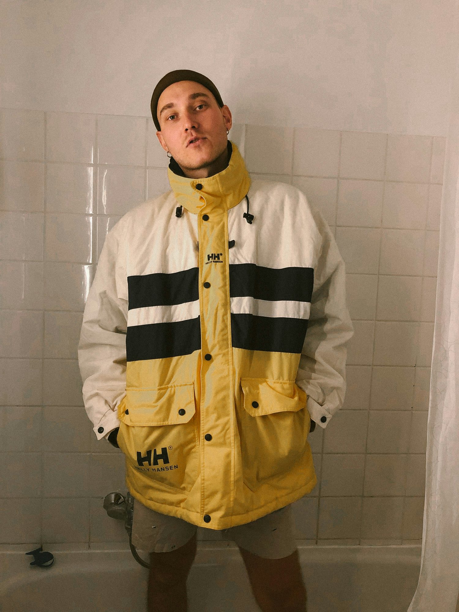 Niels sagt: So eine Jacke wollte ich immer mit sechzehn. Was die Shorts angeht, trage ich manchmal gern vermeintlich spießige Teile, die ich dann mit Königsketten oder so kombiniere.