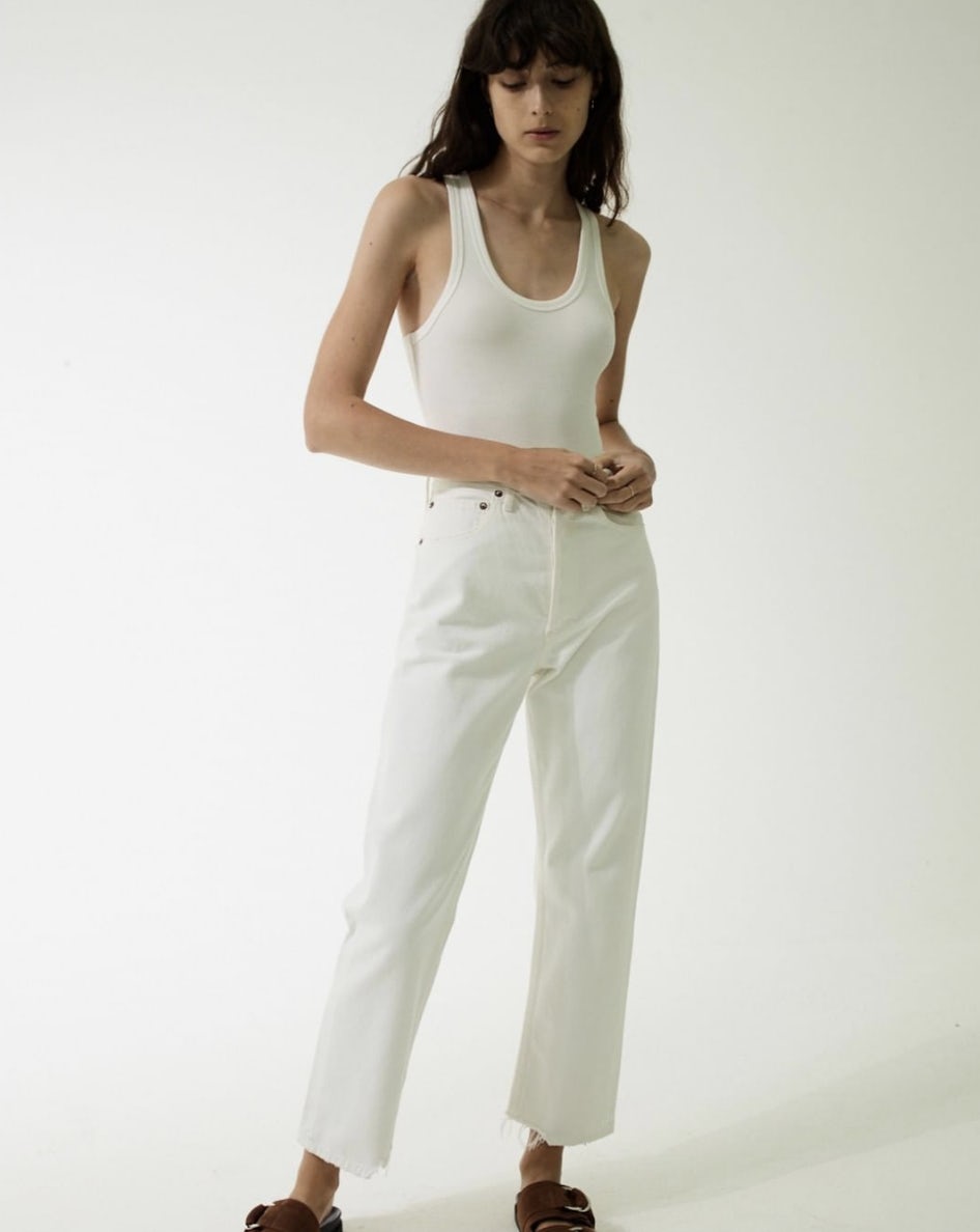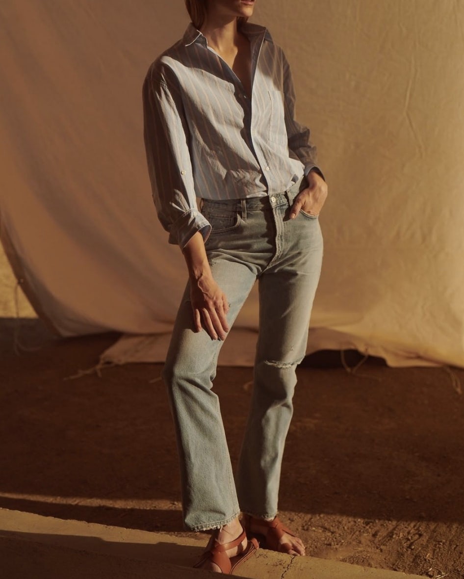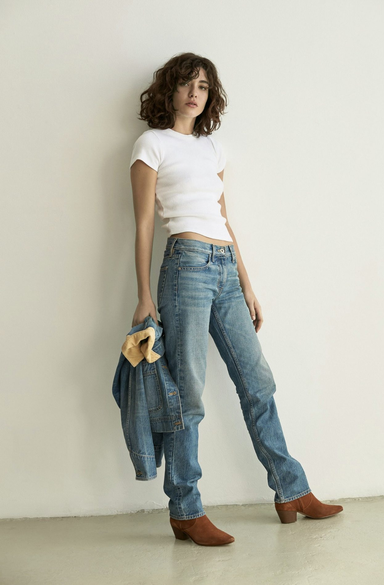 Ich musste bei Re/Done lange nach der perfekten Jeans suchen, weil die Schnitte oft sehr eng an den Beinen, aber weiter um die Taille herum sind – und jedes Paar wirklich anders ausfällt. Trial and Error! Aber nach sechs Wochen unbequemen Eintragens, sind meine Vintage Levi's, aufgearbeitet von Re/Done, und ich unzertrennlich.