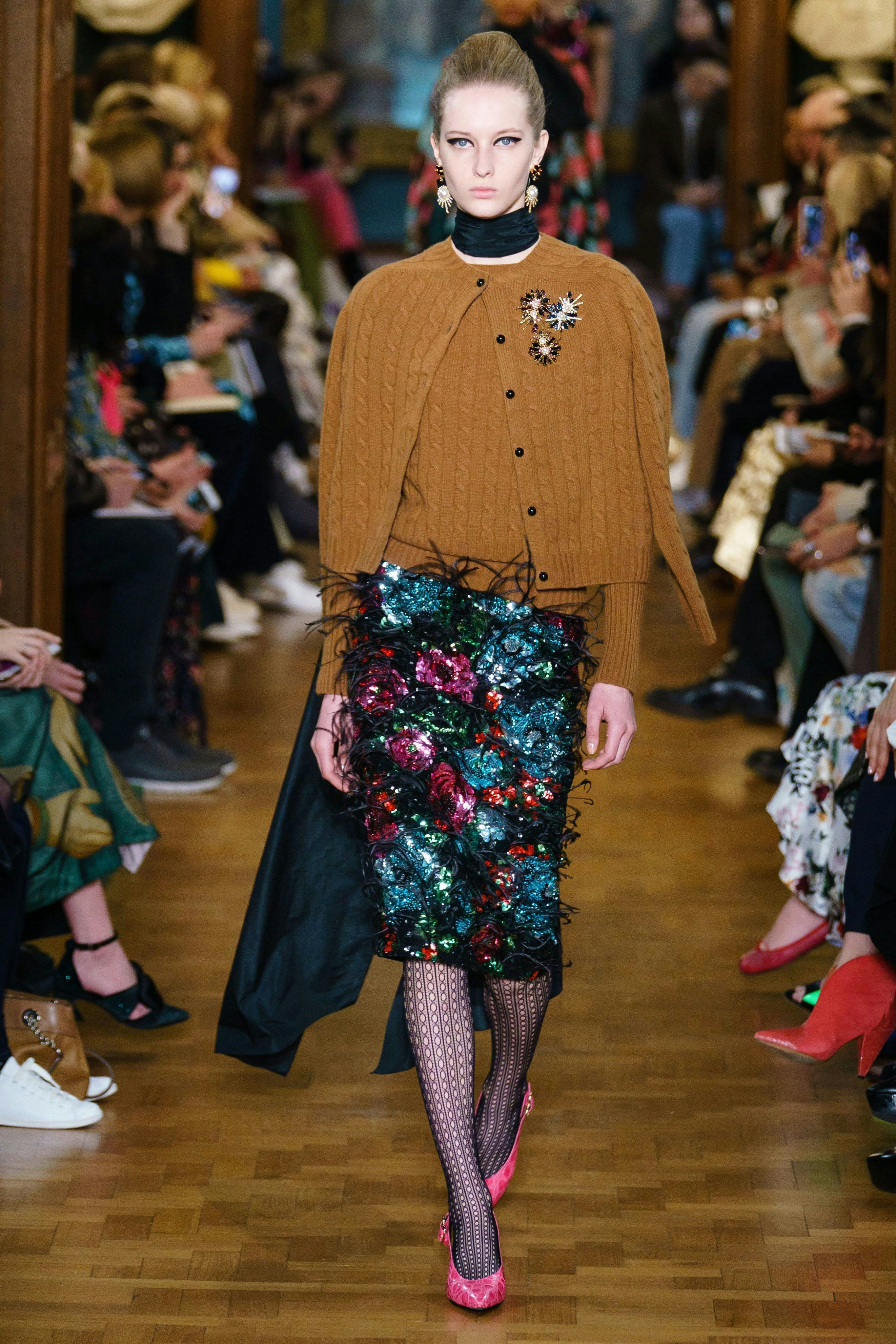 Das Label Erdem war Trendvorreiter und verlieh, anders als wir es gerne an uns sehen würden, dem Twin Set die Eleganz und Spießigkeit, wegen der es jahrzehntelang im Schrank verschwunden war. Doch hey, das braune Ensemble ist ein Look, das muss man Erdem lassen, auch wenn ich euch dazu rate, die Brosche stecken zu lassen. Zu viel ist zu viel. Werfen wir stattdessen einen Look auf ein Twin Set, nach dem wir uns alle die Finger schlecken: