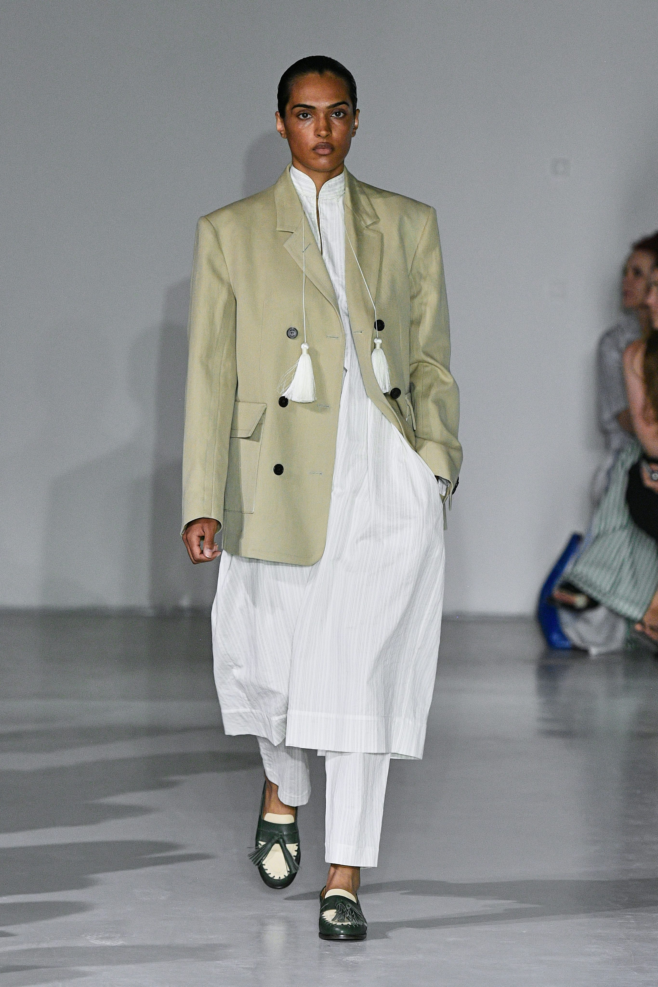 Saks Potts zeigt mit dem rosa Fransenparero, dass auch der originale 90er-Jahre-Red-Carpet-Look drin ist, Soulland macht mit dem Allwhite-Ensemble aus fließender Seide eine weitaus elegantere Figur. Ihr seht, hier findet jeder sein passendes Deckelchen – oder auch die passende Hose zum Kleid oder Rock!