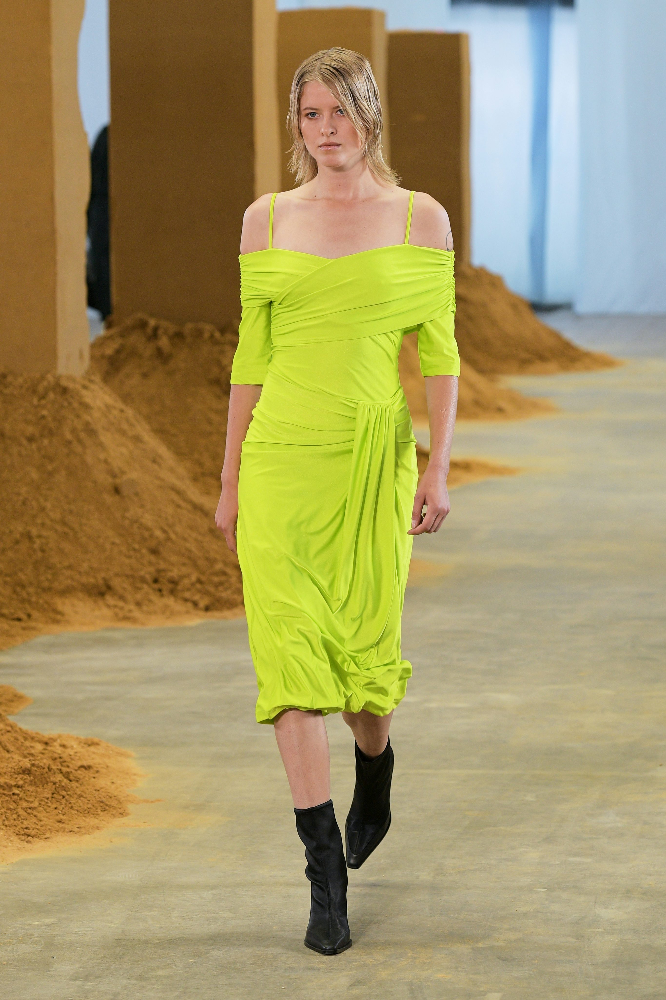 Bei diesem Anblick seid ihr am Montagmorgen wieder wach, oder? Statt dem Balenciaga-Froschgrün können wir uns im nächsten Sommer (und auch jetzt schon im Herbst und Winter) auf Neontöne freuen. Egal ob als elegantes Strick-Ensemble, als Neopren-Kleid wie bei Wood Wood oder im Colorblocking-Look wie bei Ganni oder Baum und Pferdgarten – für eure Verkehrssicherheit ist gesorgt!