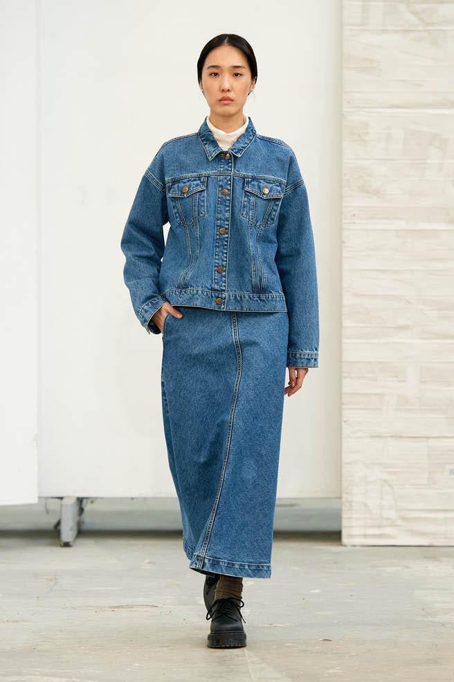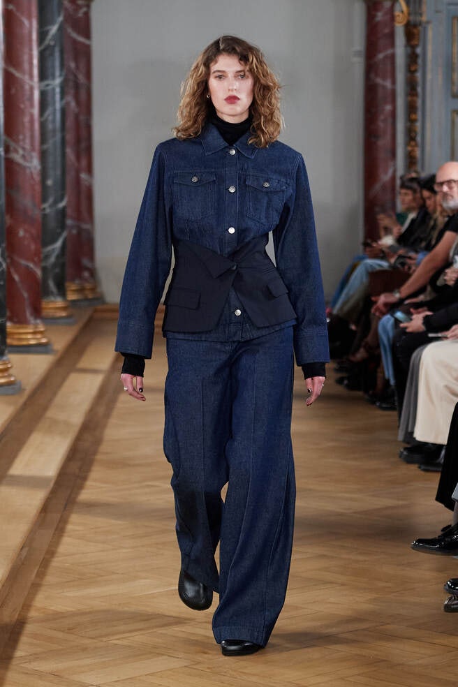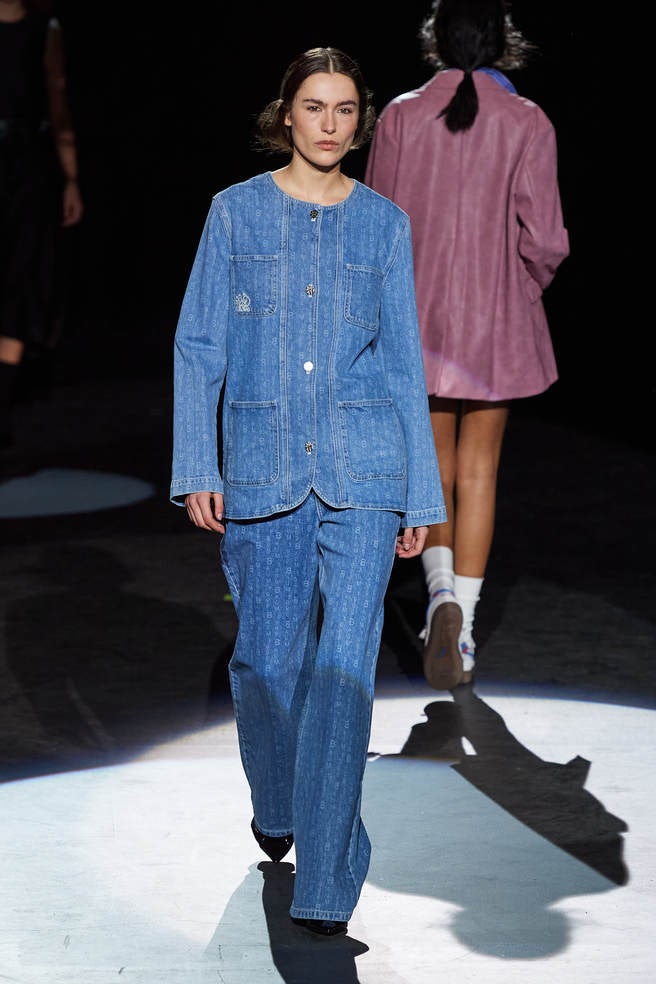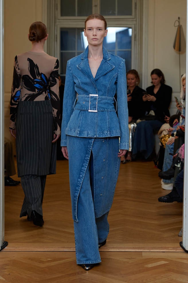 Jeans-Looks sind nun wirklich alles andere als groundbreaking, aber in den Stores nun mal so ein großer Erfolg, dass die Denim-mania uns noch lange Zeit erhalten bleiben wird. Und was soll man sagen, in einem Canadian Tuxedo macht man ja auch irgendwie immer eine gute Figur – und ist super vielseitig unterwegs. Das haben auch die Designer*innen bewiesen und mit dem Jeansstoff wirklich alles angestellt, was nur geht. Das Berliner Brand Avenir, dessen DNA Denim-Upcycling ist, kreiert einen eleganten Blazer, Marimekko druckt Blumen auf Jeans und Stine Goya layert gleich drei (!) Lagen Jeans. The (blue) sky is the limit!