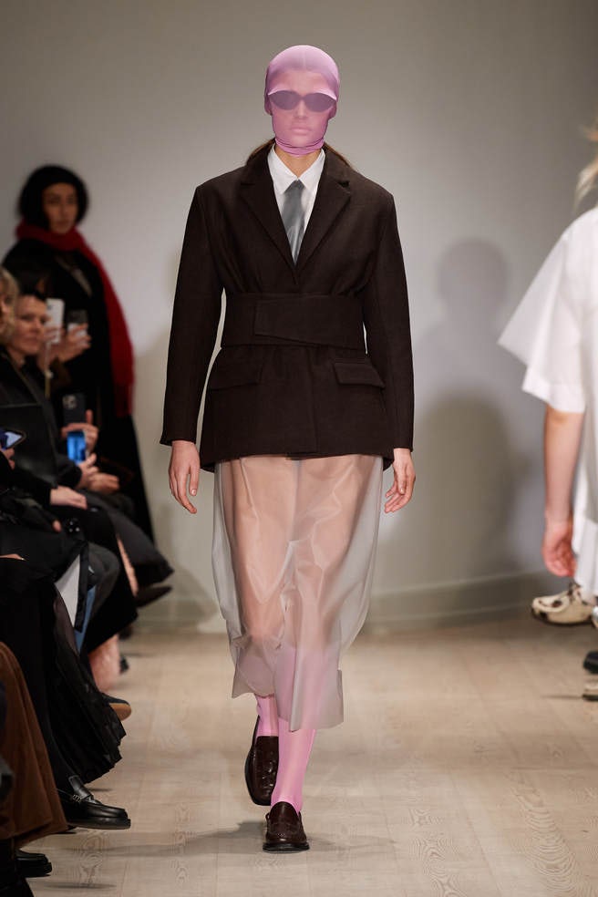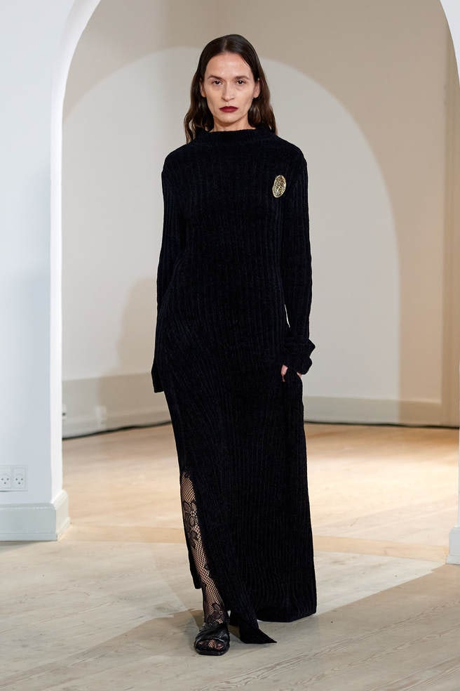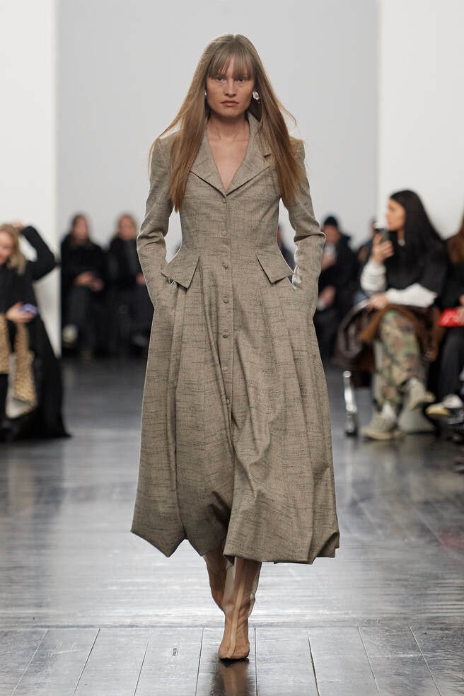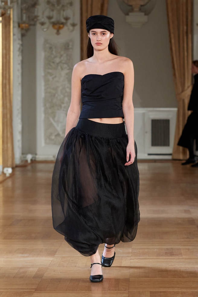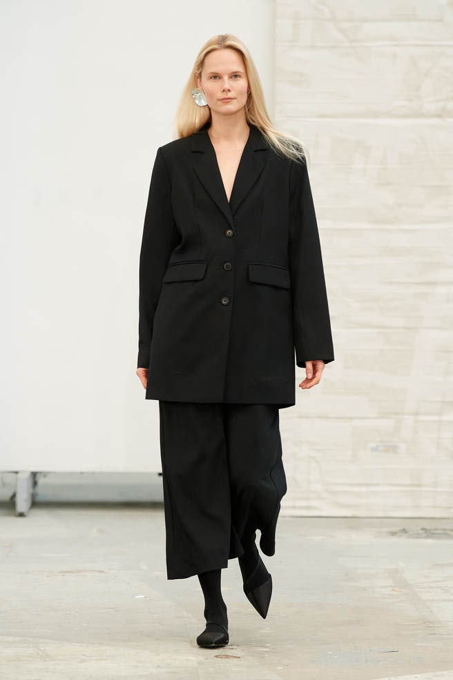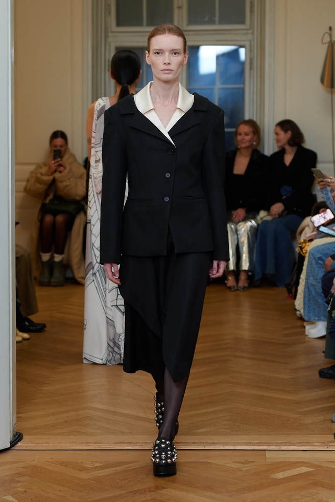 Eine andere Art der Corporate Fashion hingegen zeigten Labels wie Skall Studio, Malaikaraiss, Stine Goya und Richert Beil. Sie alle verpasstem dem Rock ein neues, strenges Image und verwandelten so Blazer und Mäntel in eine Mischung aus dem 50er-Jahre-New-Look von Dior und Wednesday Adams.