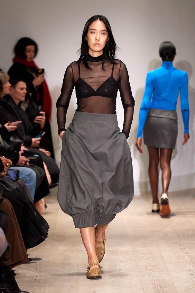 Von der Rückkehr der Ballonröcke war ich mehr als überrascht, schließlich habe ich zwar mit vielen Anspielungen auf die 1990er-Jahre gerechnet, aber nicht mit einem Comeback aus den Achtzigern. Aber hier ist er, mein wahr gewordener persönlicher Rock-Albtraum, der uns im nächsten Winter erwartet. Mit dem gerafften Saum lenkt er den Blick besonders auf die Schuhe – und kann im Allover-Look wie bei Remain überraschend elegant aussehen.