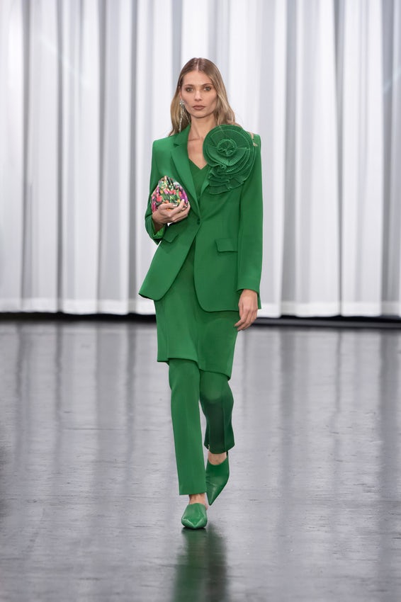 Marc Cain ziert mit einer großen grünen Blume sein Blazer Revers, Baum & Pferdgarten schmückt damit seinen Minirock, Opéra Sport schnürt den Blumengürtel enger und Rotate verzichtet zugunsten einer riesigen Blüte gleich ganz aufs Oberteil. Ich muss sagen, ich bin froh, dass ich noch so viele Blumenhaarspangen habe, die klippe ich einfach an Gürtel und Co.!