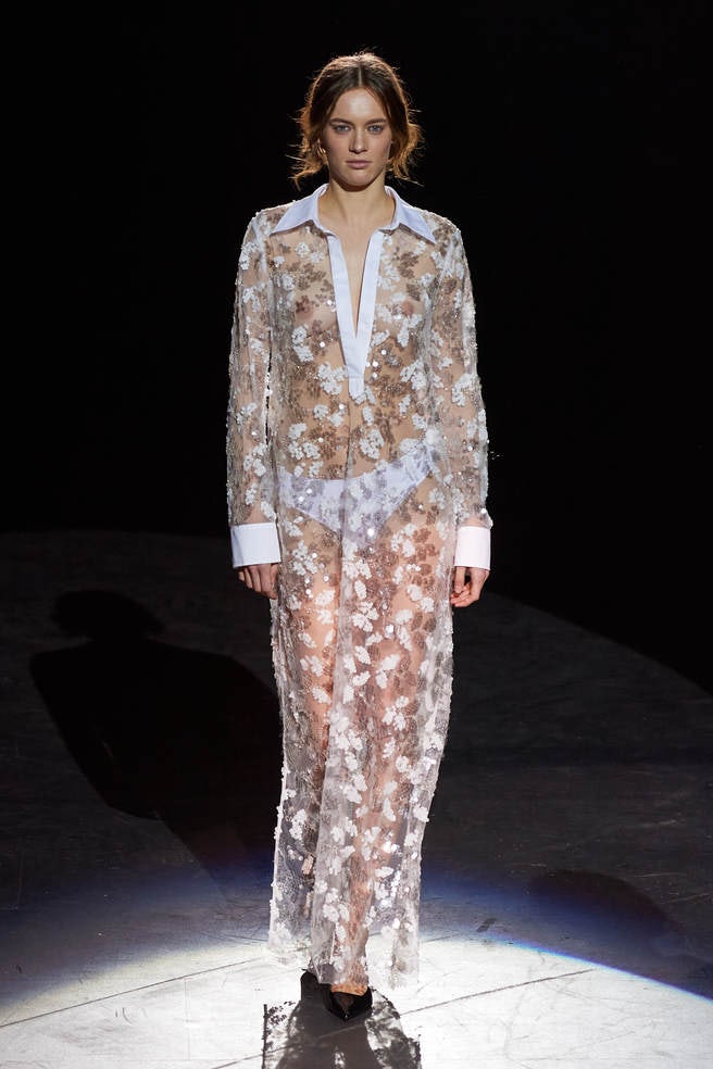 Transparenz ist ein beliebtes Runway-Thema und darf in keiner Trendaufzählung fehlen. Die Herausforderung ist dann: Wie trägt man das Naked Dress von Haderlump, den funkelnden Jumpsuit von Kilian Kerner oder das Kleid aus Spitze von Gestuz denn dann im Alltag? Die Antwort: Am besten sofort im August, wenn die neuen Kollektionen in die Läden kommen. Ansonsten muss man clever schichten und mit der Transparenz spielen, zum Beispiel einen Pullunder über transparentes Longsleeve tragen oder Kleider mit einer (roten?) Strumpfhose stylen.
