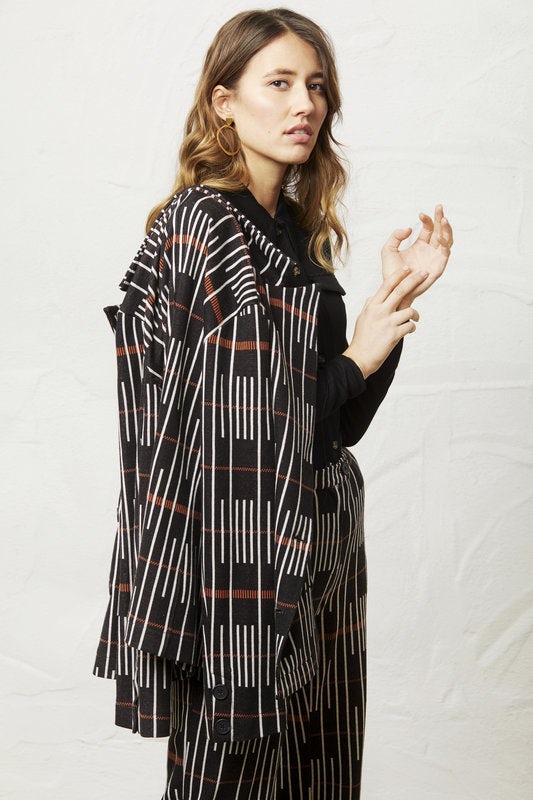 Das Familienunternehmen Lana Organic aus Aachen hat durch seine ungewöhnlichen Muster und Schnitte meine Aufmerksamkeit auf sich gelenkt. Für nachhaltige Mode sind sie beinahe avantgardistisch! Unter uns gesagt dürfte faire Mode für mich ohnehin viel mehr wagen und sich in unbekannte Gewässer jenseits der Basic-Linien stürzen. Lana überzeugt durch Midiröcke im blauen Schottenkaro, weiten Schlaghosen, die unten am Saum mit einem Reißverschluss versehen sind und Pullover mit überlangen Ärmeln, die man nach Belieben hochschoppen kann.