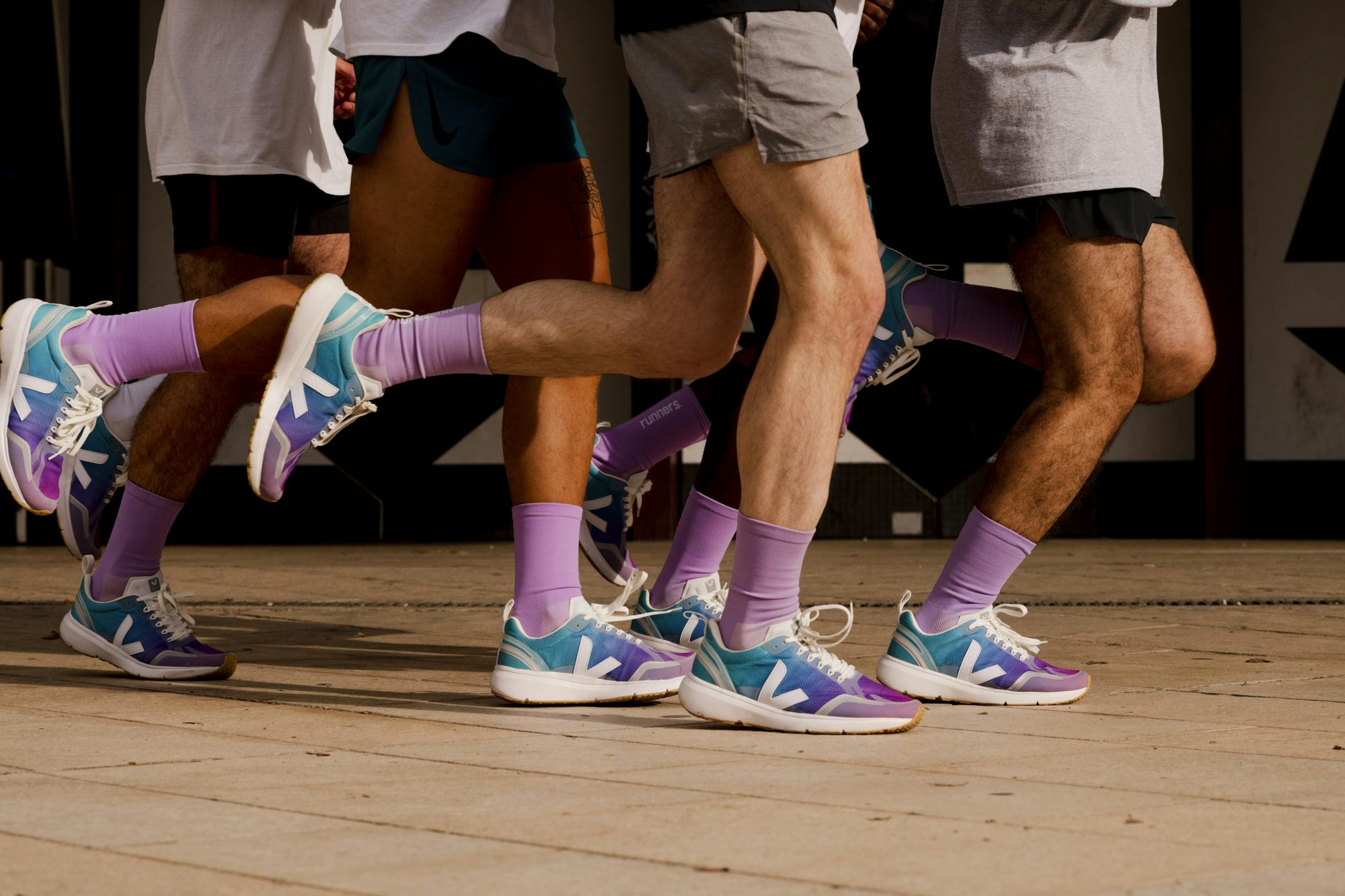 Mit den neuen Running-Schuhen von Veja läuft man bestimmt wie auf rosaroten Wolken. Nein, ich meine natürlich auf lila-blauen Wolken. Für die erste Kooperation für Laufschuhe hat sich das französische, nachhaltige Brand mit den Laufliebhabern von Jolie Foulée zusammengetan. Jolie Foilée, das klingt eher wie ein verdammt leckeres französisches Gericht, aber tatsächlich steckt dahinter ein Instagram-Account von untalentierten Läufern. Ja, wirklich. So bezeichnen sie sich selbst.