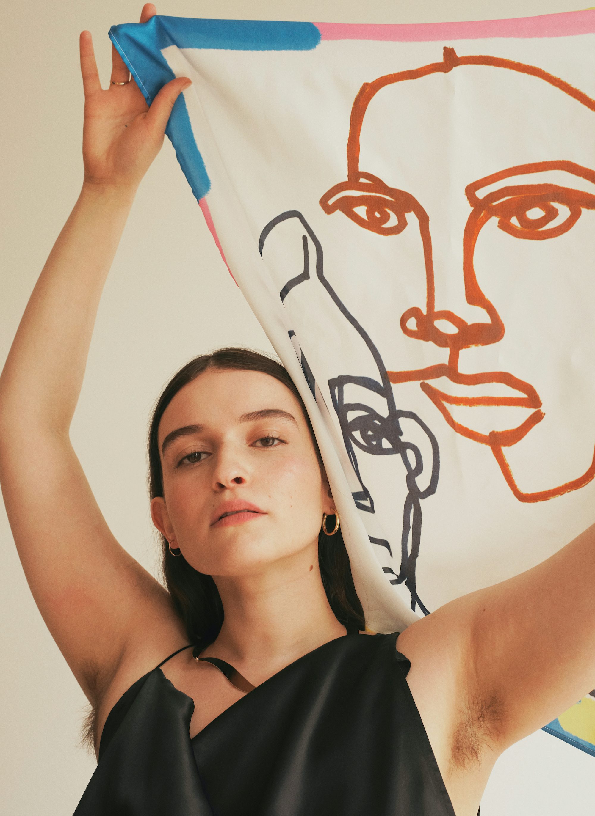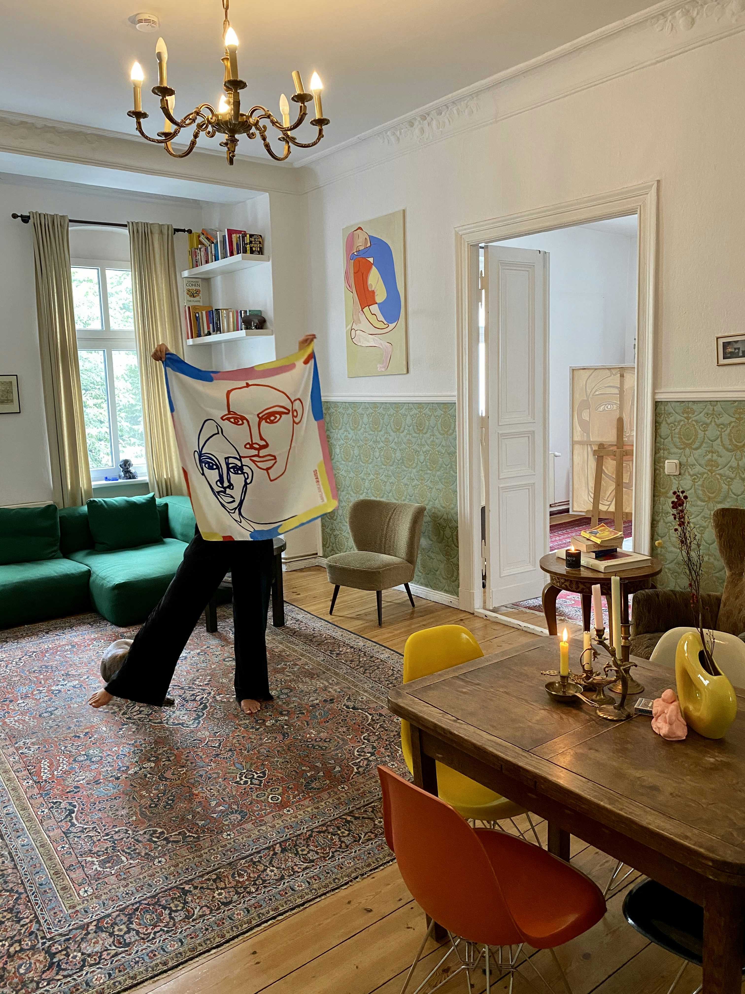 Und anscheinend ging es vielen anderen beim Anblick ähnlich, denn jetzt sind aus der Zusammenarbeit drei Prints „The Little Ladies“ entstanden, die durch ein Seidentuch und ein T-Shirt ergänzt werden.