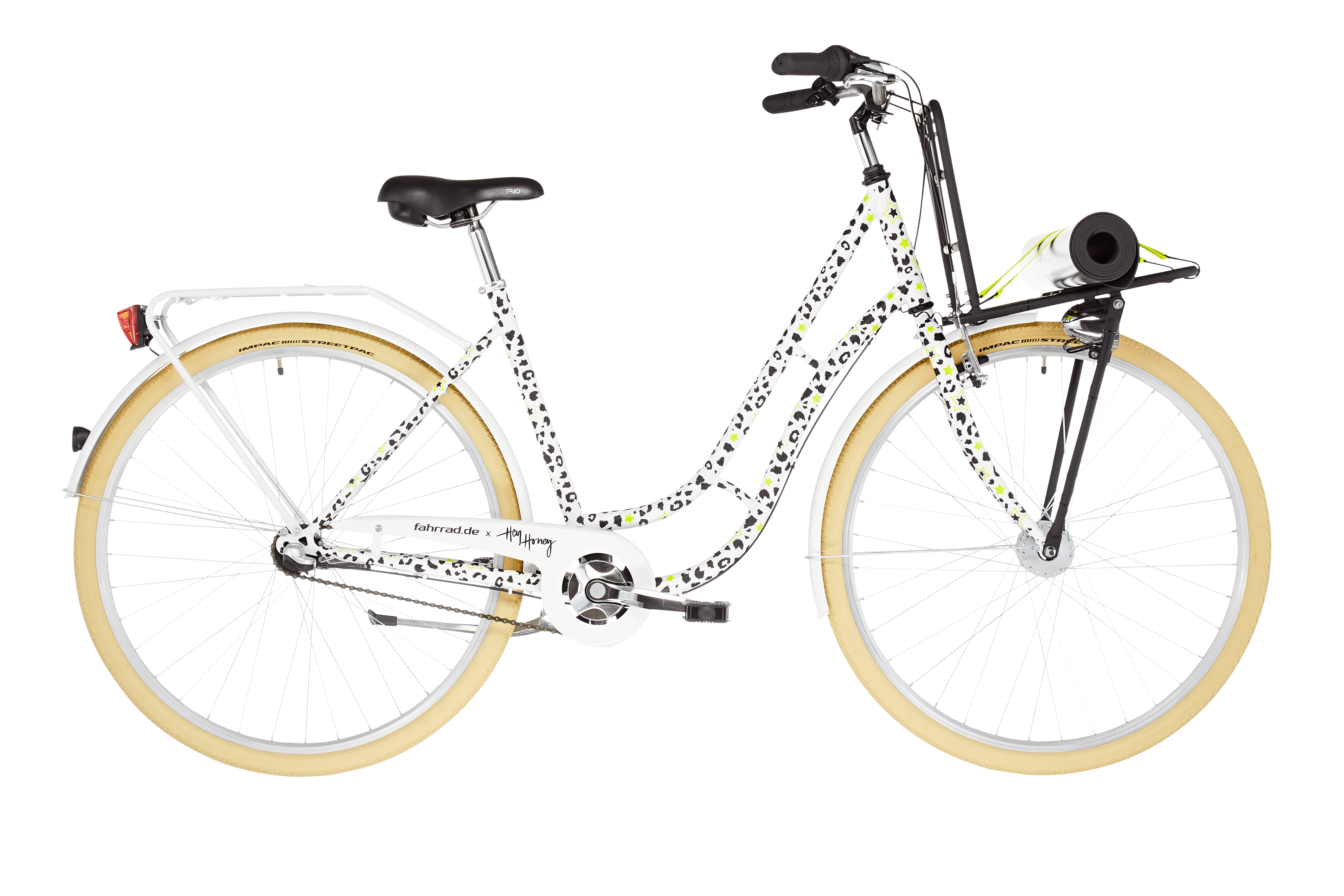 Denn bei dem Fahrrad von fahrrad.de in Kooperation mit Hey Honey könnte ich doch schwach werden. Es ist einfach das perfekte Citybike und sieht mit seinem Allover-Leoprint einfach so gut aus! Dazu kommt der weiß gehaltene Gepäckträger sowie ein praktischer Front Rack (davon träume ich schon so lange) mit neongelben Straps, mit denen man z.B. eine Yogamatte ideal befestigen kann. Oder einen Picknickkorb. Oder eine Handtasche.