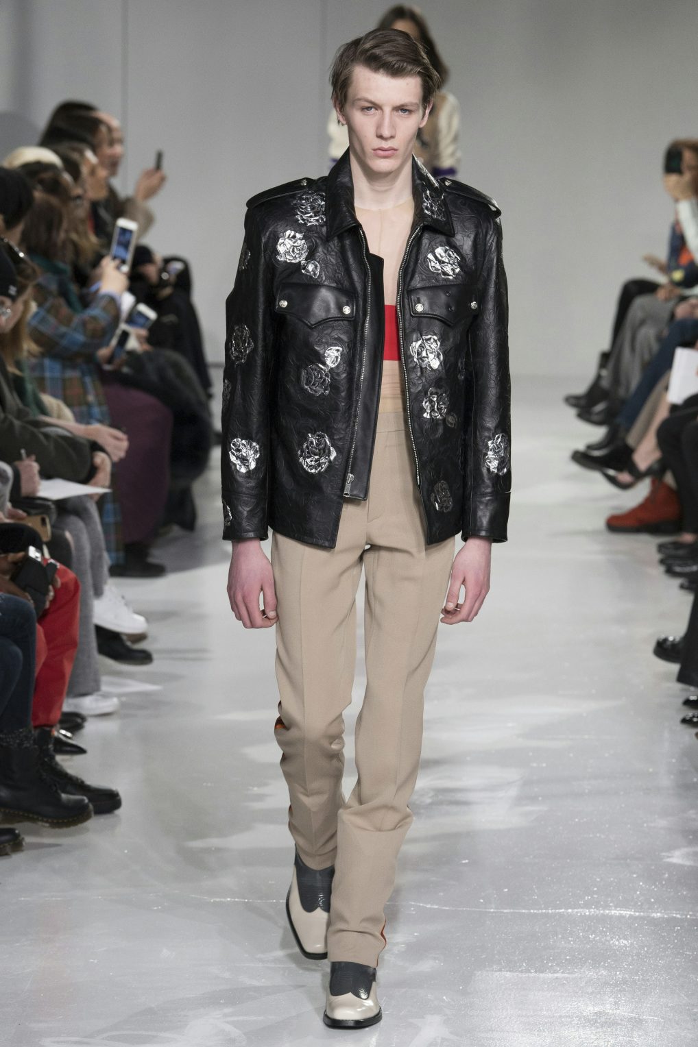Simons' Kollektion für Calvin Klein zeichnet ein Spiel mit dem Begriff „amerikanisch“ aus. Wiederholt nimmt er Bezug auf die für diesen Kontinent und seine Kultur typischen Referenzen – Western, die Filmindustrie, Pop-Art, Politik. Die Branche feiert seine durchdachten Kollektionen, insgesamt dreimal wird Raf Simones während seiner Zeit bei Calvin Klein mit Awards des Council of Fashion Designers of America (CFDA) ausgezeichnet. Zu Beginn und Ende seiner Debüt-Show im Februar läuft „This is not America“ von David Bowie. Ein starkes und mutiges Statement, um eine Zusammenarbeit mit einer der amerikanischsten Marken der Modeindustrie zu beginnen. Doch die Botschaft kommt an. Die Presse lobt die Entwürfe des belgischen Designers über den Klee.