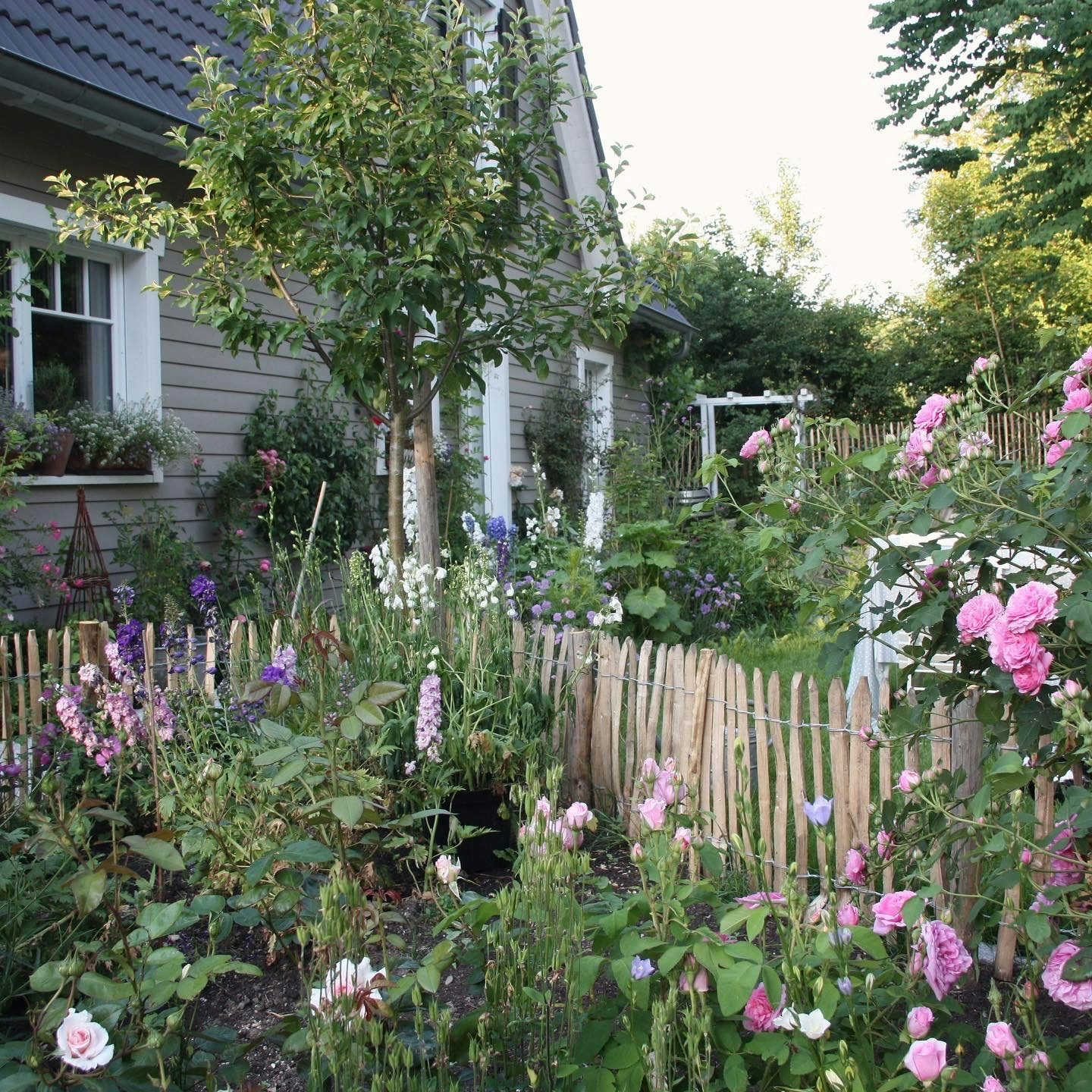 Sarah: Das könnte eine kleine Mauer sein oder eine niedrige Hecke aus Strauchefeu. Auch hier geht ein Staketenzaun gut. Besonders schön ist es, wenn man eine Art Eingang schafft, wie zum Beispiel mit einem Rosenbogen oder zwei Büschen. Ähnlich wie bei der letzten Frage ist es hier ganz wichtig, dass man eine Verbindung zwischen den verschiedenen Elementen schafft. Es sollte also nicht so aussehen wie ‚bestellt und nicht abgeholt‘, sondern eher so, dass alle Teile des Gartens (ob Beete, Wege, oder Kaffee-und-Kuchen-Ecken) doch aus einem Guss stammen.