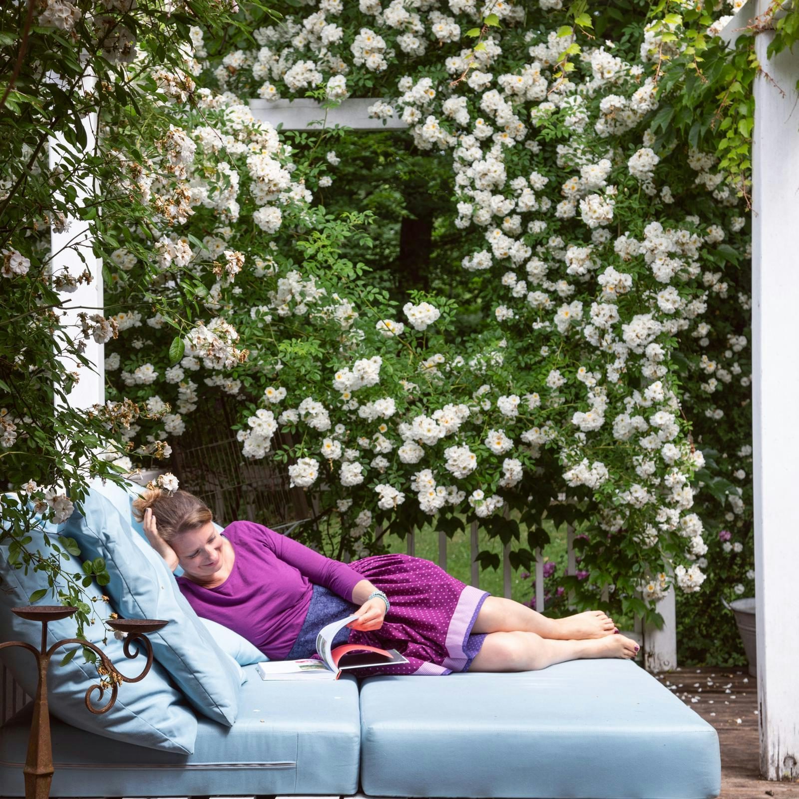 Ich will voll gewucherte Beete, mit hohen, mehrjährigen Stauden bepflanzt. Stauden sind Pflanzen, die buschartig und hoch wachsen, üppig blühen und im besten Fall jedes Jahr wieder kommen. Außerdem möchte ich auch neue Beete im Garten anlegen, Wege ebnen, Heilkräuter pflanzen, einen Bogen installieren und mit der Ramblerrose beranken lassen, Sitzgelegenheiten an verschiedenen Ecken integrieren. Ich träume von einem sogenannten Cottage-Garten, der wild wuchert und in dem man an jeder Ecke eine neue, schöne Pflanze entdeckt. Es folgen ein paar Inspirationen: