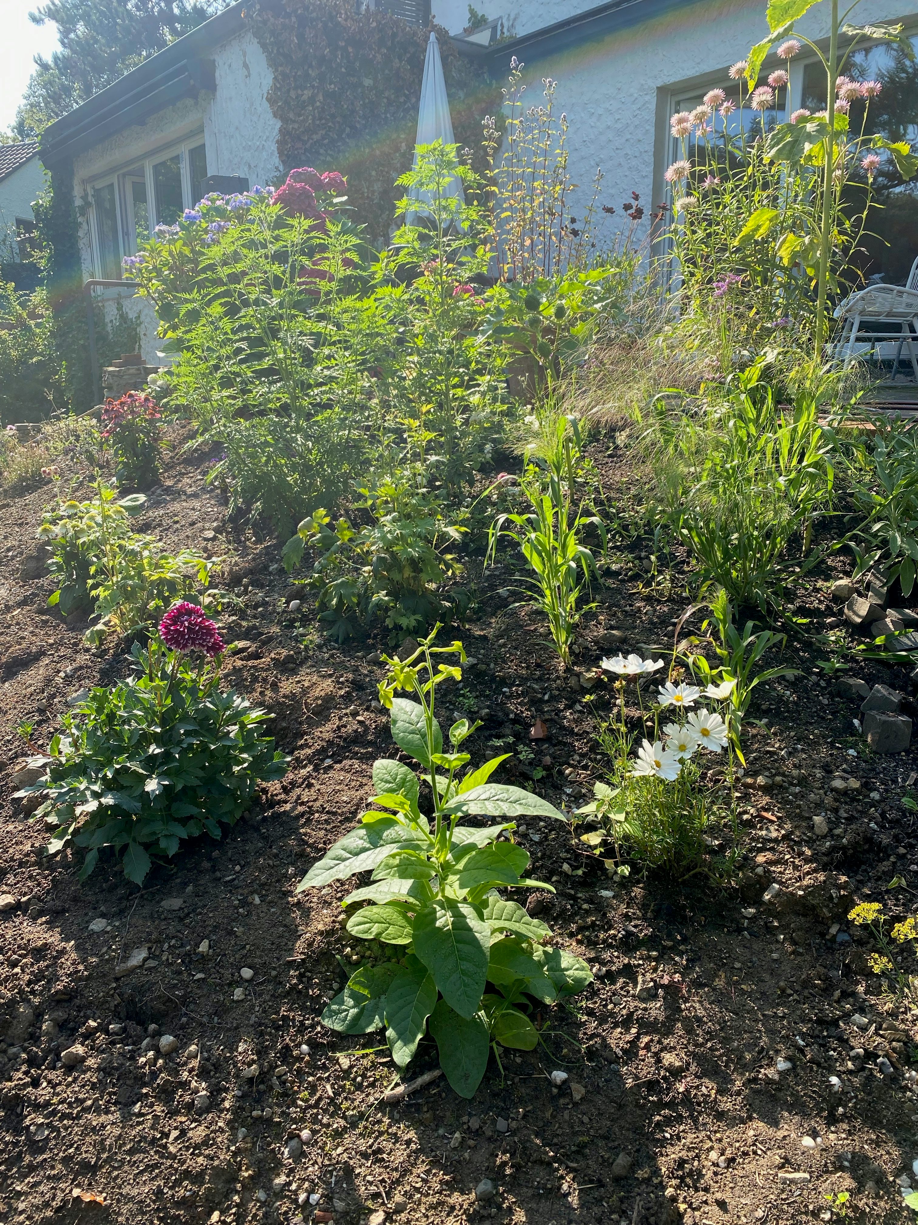 Zugegeben, von den Ergebnissen auf den Bildern ist mein Garten noch weit entfernt und der nicht existente Sommer dieses Jahr im Rheinland hat sein Übriges dazu getan, dass alles langsamer vonstattenging, als ich es mir vorgestellt hatte. Im Dauerregen machte es einfach keinen Spaß, Blumen zu pflanzen. Und ja, um einen Garten anzulegen, braucht es Geduld. Da bin ich nicht so gut drin. Aber es dauert einfach, bis die Jungpflanzen zu einem schönen Bild zusammenwachsen, größer werden und irgendwann eben doch alles überwuchern werden.