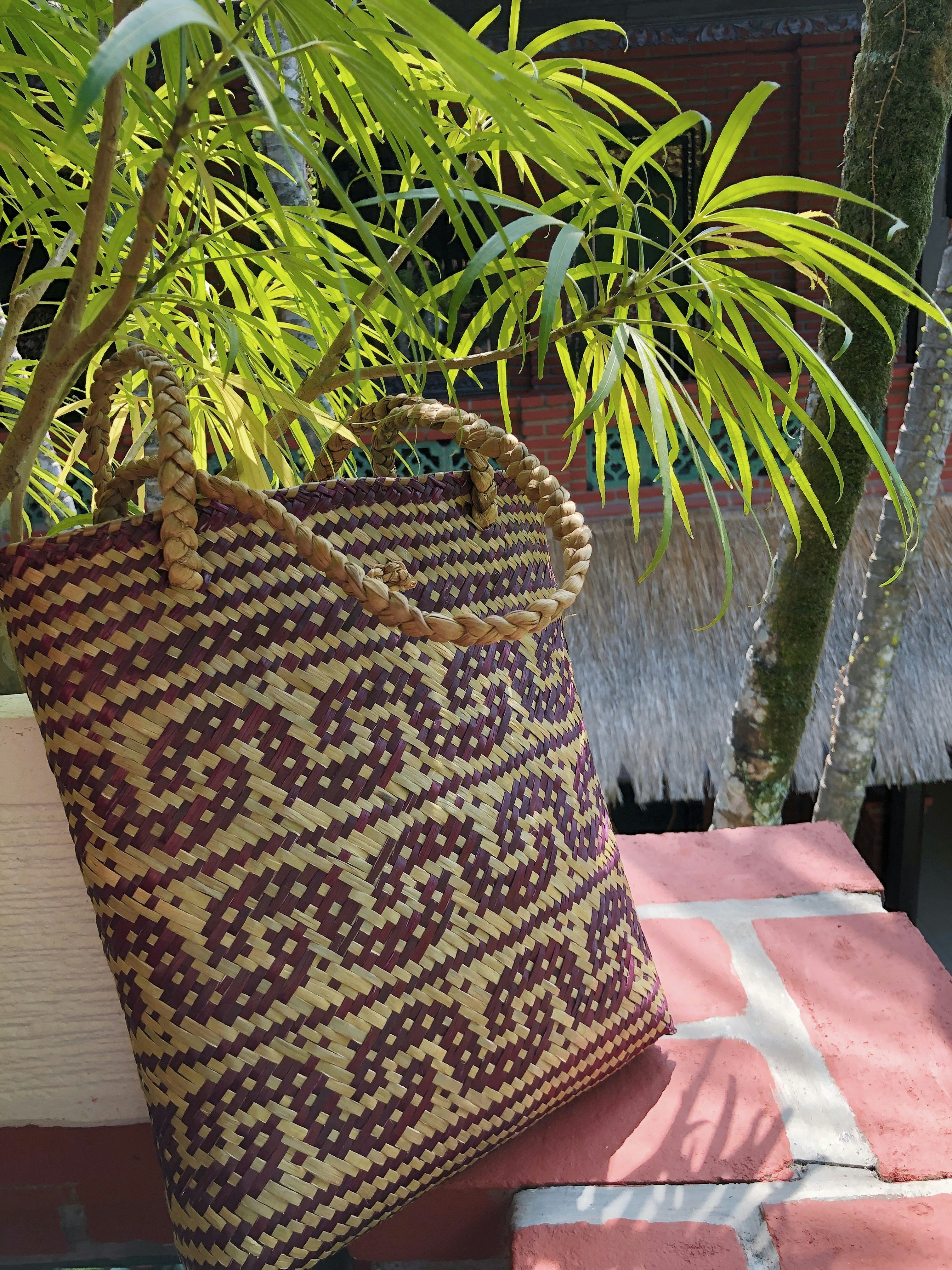 Bei dieser wunderschönen Tasche handelt es sich eigentlich um einen Notkauf. Während meines ersten Ubud-Besuchs war ich nämlich so underwhelmed, dass auch meine Shoppinglaune eher bei null war (was an sich hier allerdings ohnehin der Fall ist). Das Ergebnis? Ein Buch, ein Notizheft, ein Textmarker und zwei Kugelschreiber wanderten in meinen nicht vorhandenen Warenkorb. Und da ich mich den angebotenen Plastiktüten verweigerte und ansonsten mit leeren Händen dastand, musste eine Lösung her. Gesucht, gefunden und inzwischen auch sehr geliebt ist meine Palmenblatt-Tasche seit diesem Tag und ich werde ganz doll auf sie aufpassen, damit sie mich lange begleitet. Sonderlich stabil ist sie nämlich leider nicht, dafür aber handgefertigt von balinesischer Hand und, wie ich hoffe, nachhaltig. Nachhaltiger, als Plastik aber allemal.