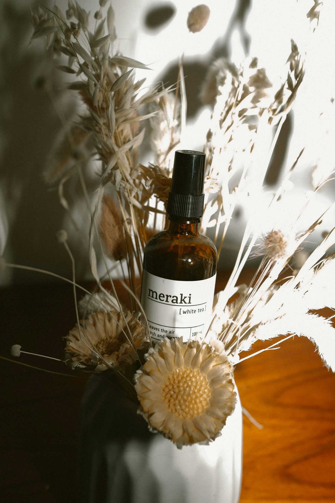 Auch wenn ich ein absoluter Fan von Duftkerzen bin, es gibt auch Momente, in denen man möchte, dass es schnell (und gefahrlos) gut riecht. Im Schlafzimmer zünde ich z.B. nur selten Kerzen an, weil ich Angst habe, einzuschlafen während die Kerze noch brennt. Deswegen steht auf meinem Nachttisch das Raumspray von Meraki, das ich zum Geburtstag geschenkt bekommen habe und seitdem begeister verwende. Es riecht beruhigend, fein und frisch und ich sprühe es häufig im Schlafzimmer umher, bevor ich mich Schlafen lege. Pluspunkt: Es beruhigt nicht nur mental, sondern hinterlässt auch auf Kleidung und Bettwäsche einen angenehmen Duft.