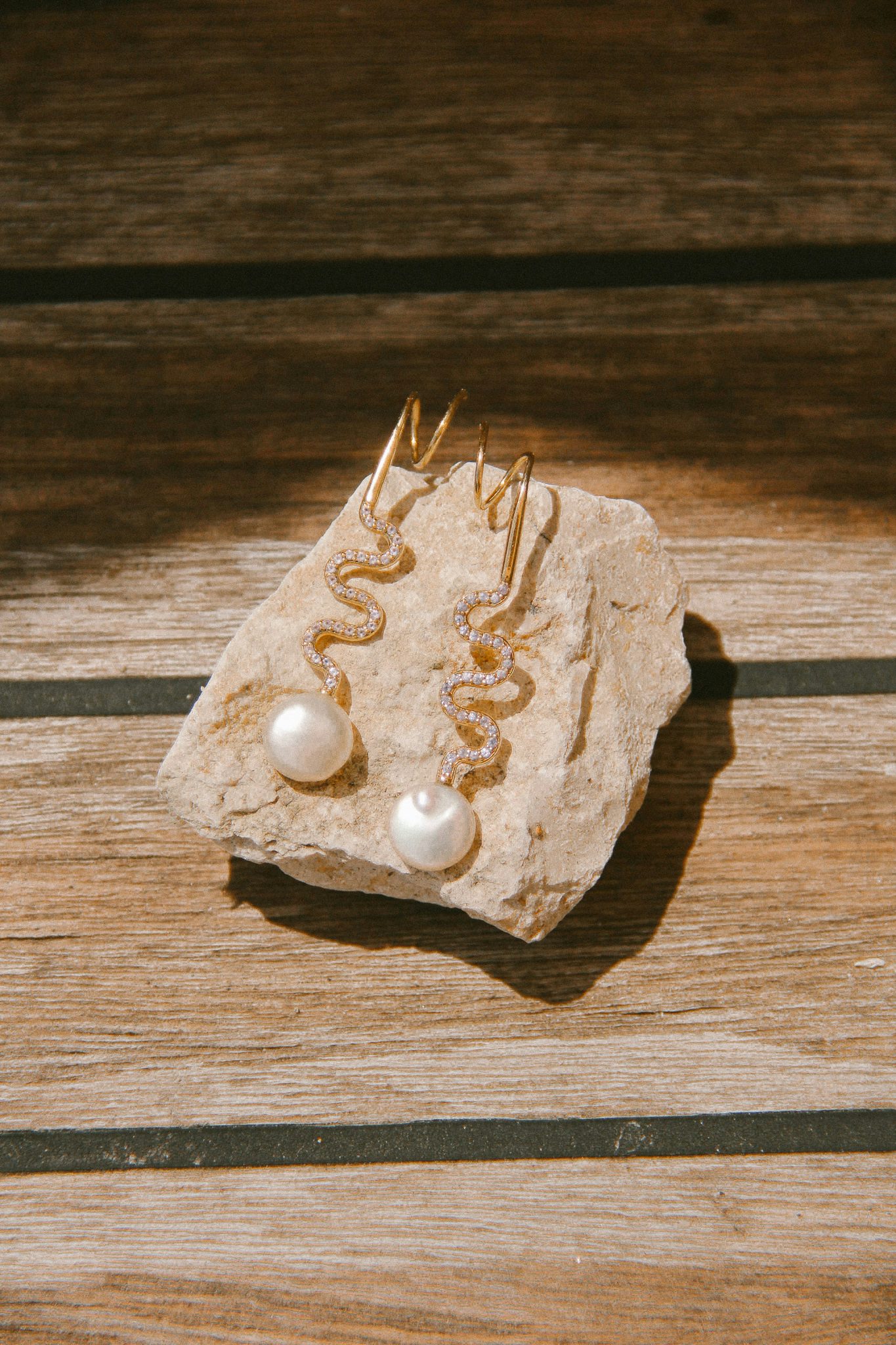 Das ist der Titel der ersten LP einer befreundeten Band und ich muss, obwohl es schon ein wenig kitschig ist, immer daran denken, wenn ich meine Miraggio Twirl Earrings von Maria Black anschaue. Die Süßwasserperlen an den gewundenen und mit Steinchen besetzen Hängern wirken wie lebendig gewordene surrealistische Malerei. Besonders gefällt mir ein Makel: Eine der Perlen hat eine eingeschlossene Luftblase. Ich könnte jetzt über perfekte Imperfektionen sprechen, aber ihr wisst, worauf ich hinauswill, oder?