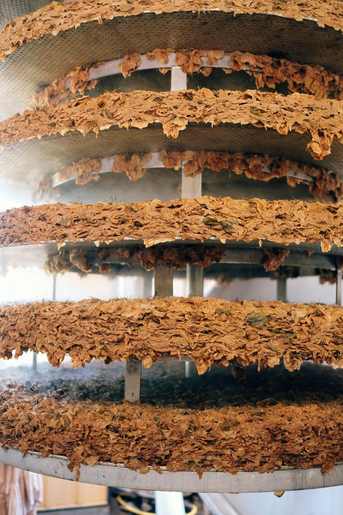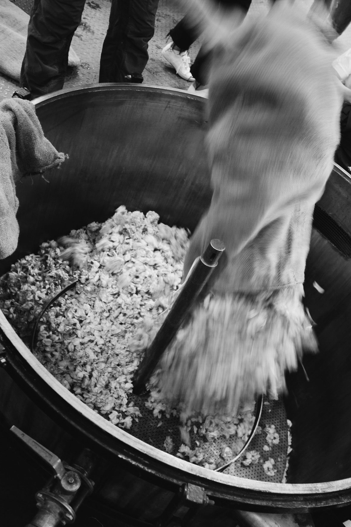 Danach werden die Blumen gewogen und zur Anlage auf dem Gelände gefahren, wo sie gleich weiterverarbeitet werden. Denn das schlimmste, was bei der Parfümproduktion jetzt passieren kann, ist, dass die Blumen in der südfranzösischen Hitze verwelken. Danach werden die Blüten in einen großen Behälter gefüllt, fünf Schichten an der Zahl und übereinander gestapelt. Es folgen drei Bäder in einem Lösungsmittel, was auf hohe Temperatur erhitzt wird. Dabei sättigt sich das Mittel mit den Duftmolekülen der Mairose.